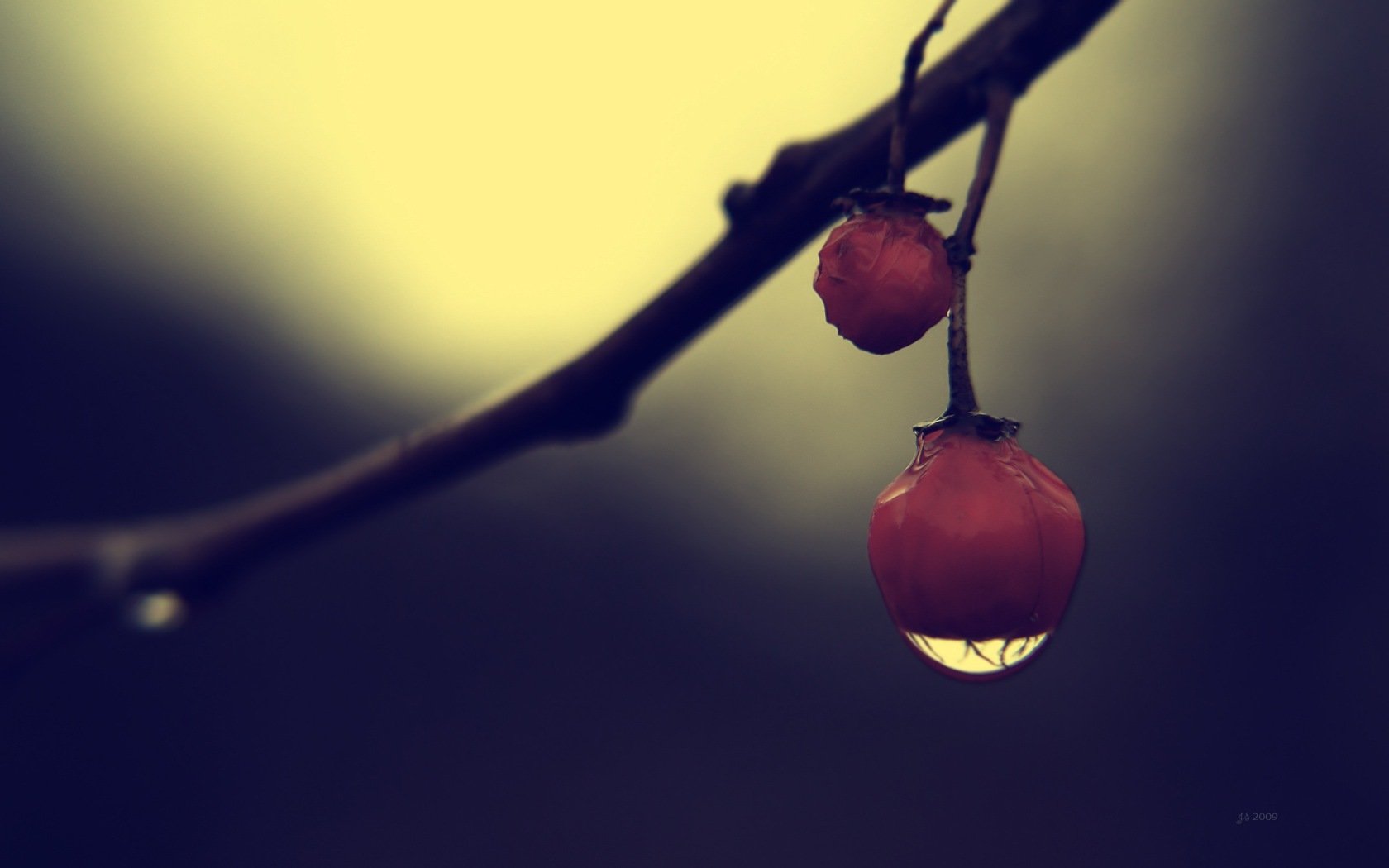 Prise de vue macro d'une goutte sur un brin d'herbe verte