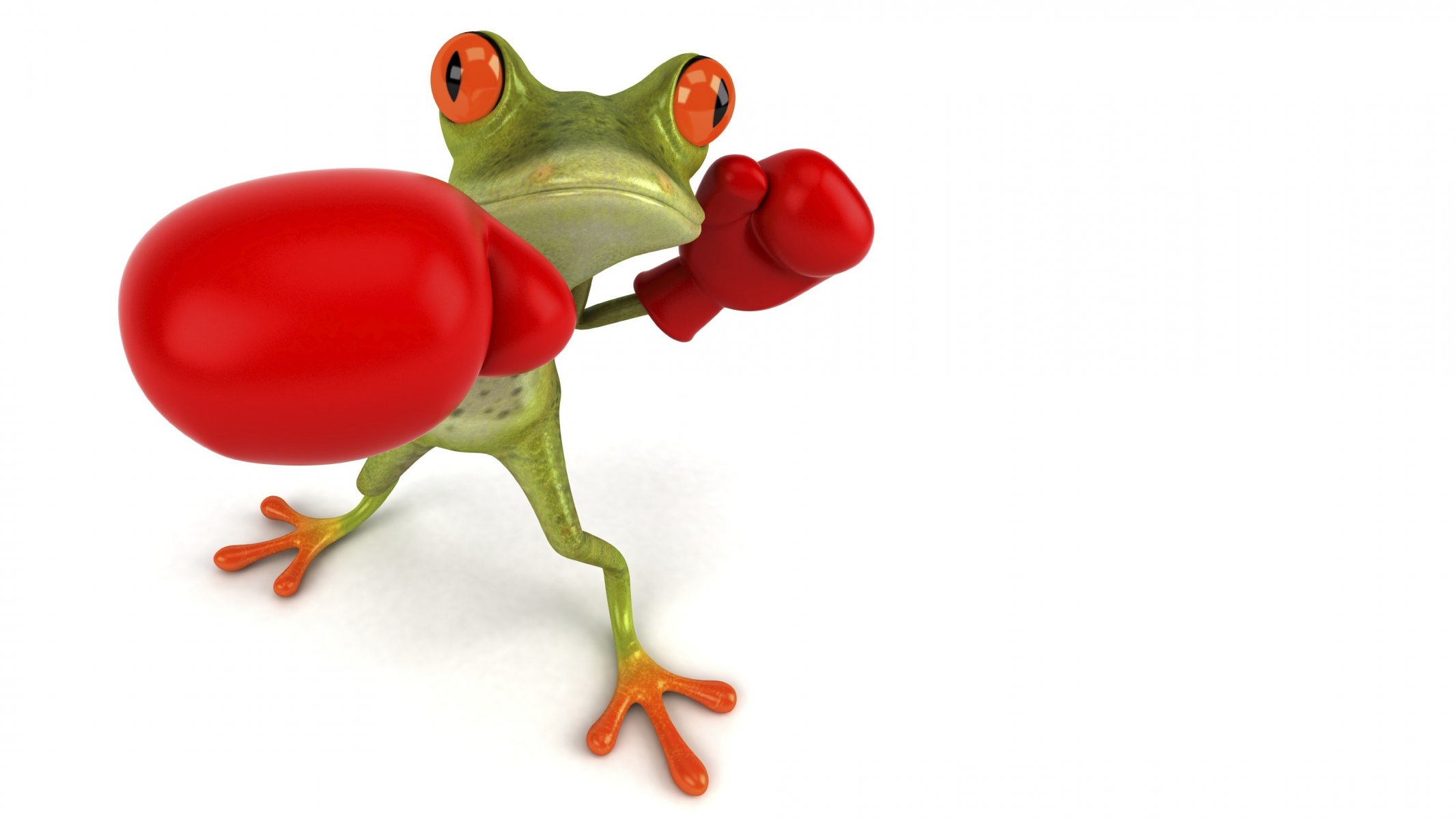 Grenouille verte dans des gants de boxe rouges