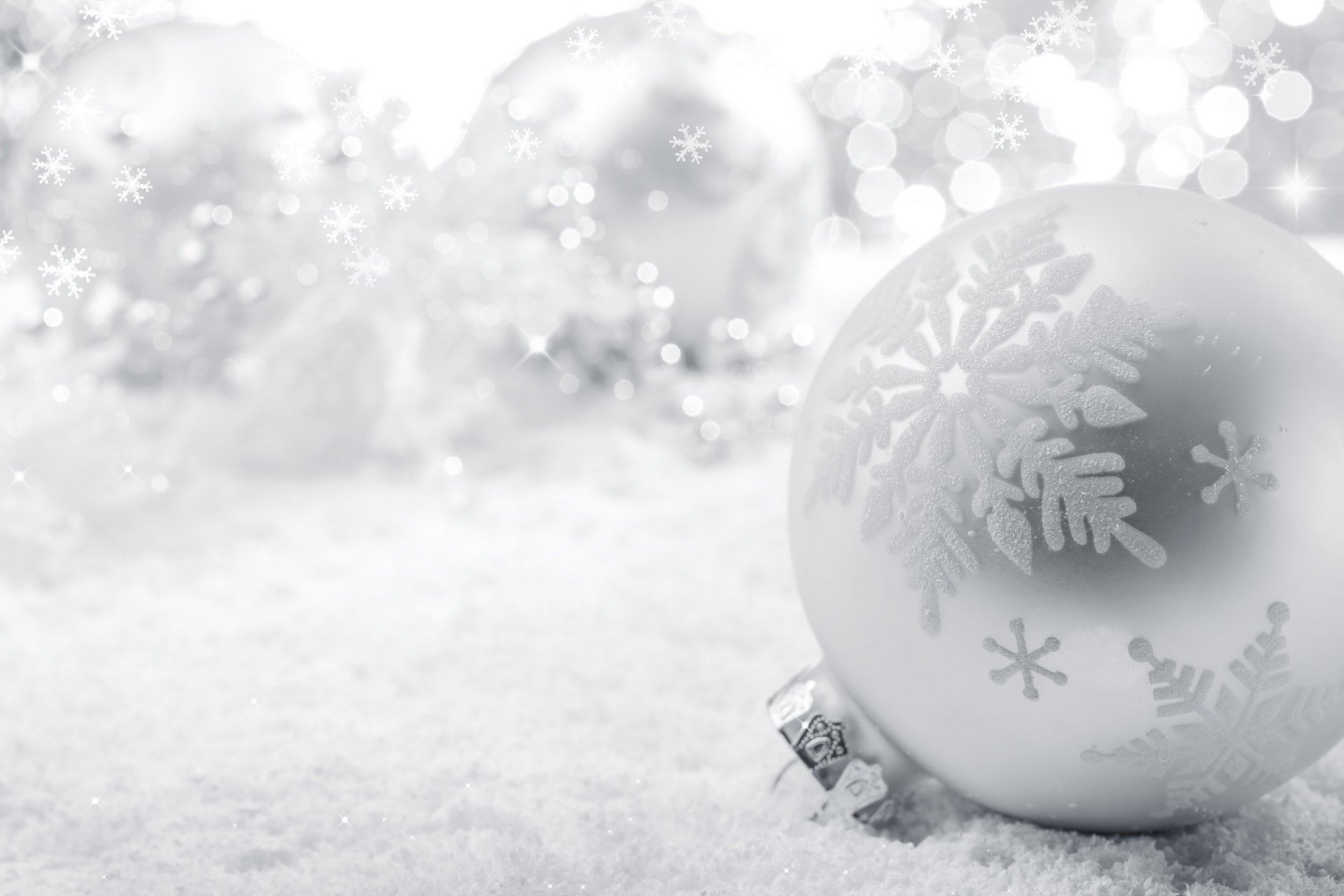 Beaucoup de flocons de neige sur une grosse boule