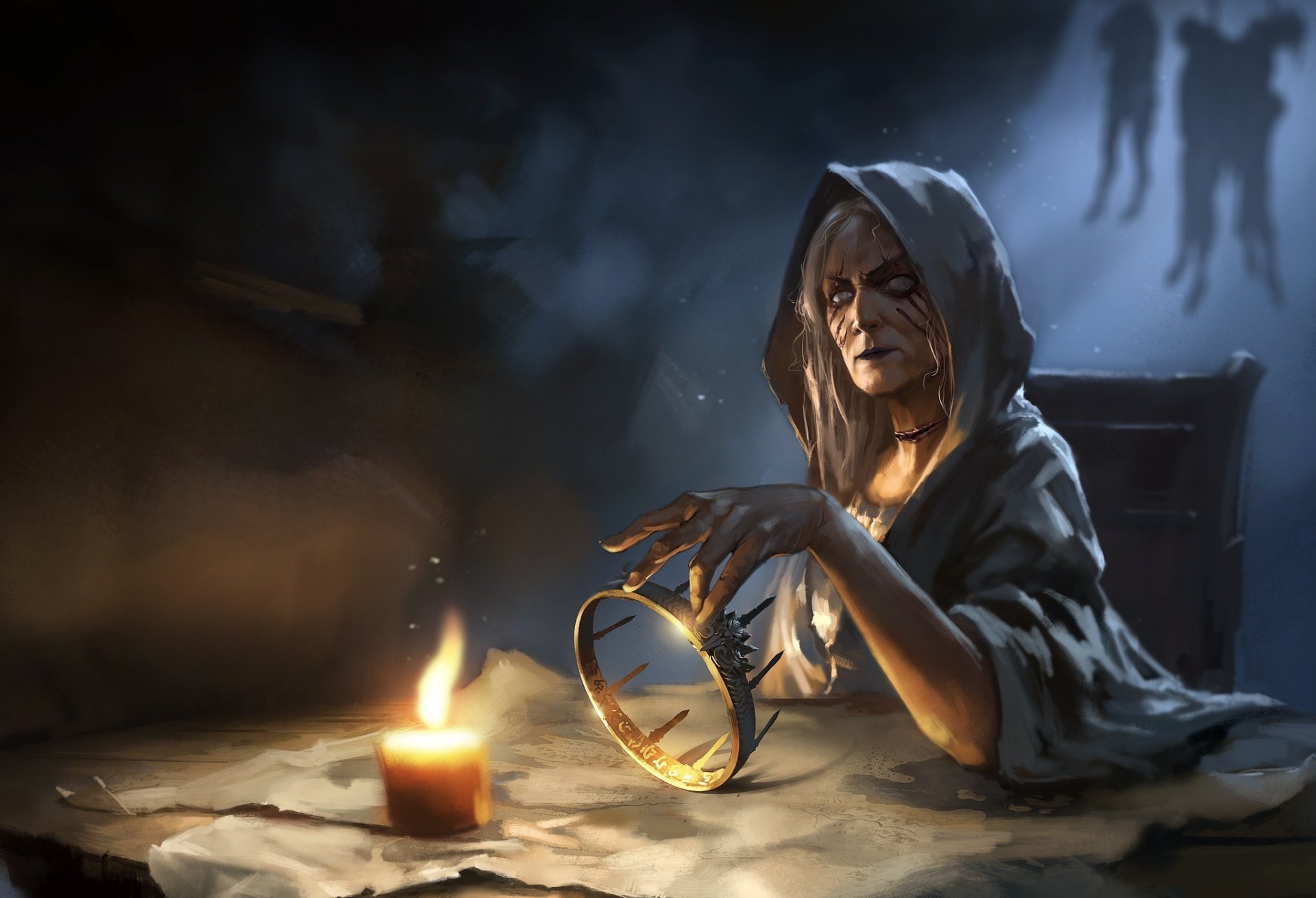 La guerrière des ténèbres de Fantasy tient une épée dans ses mains