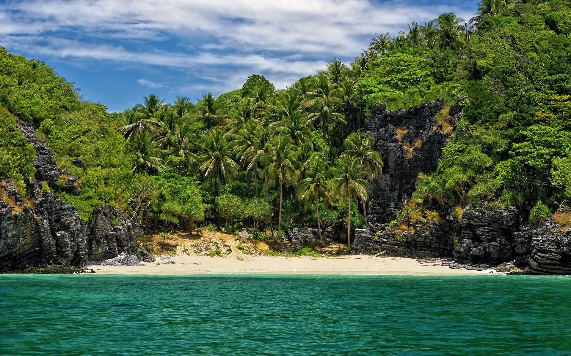 Falaises d'une plage isolée . Le pouvoir de la nature