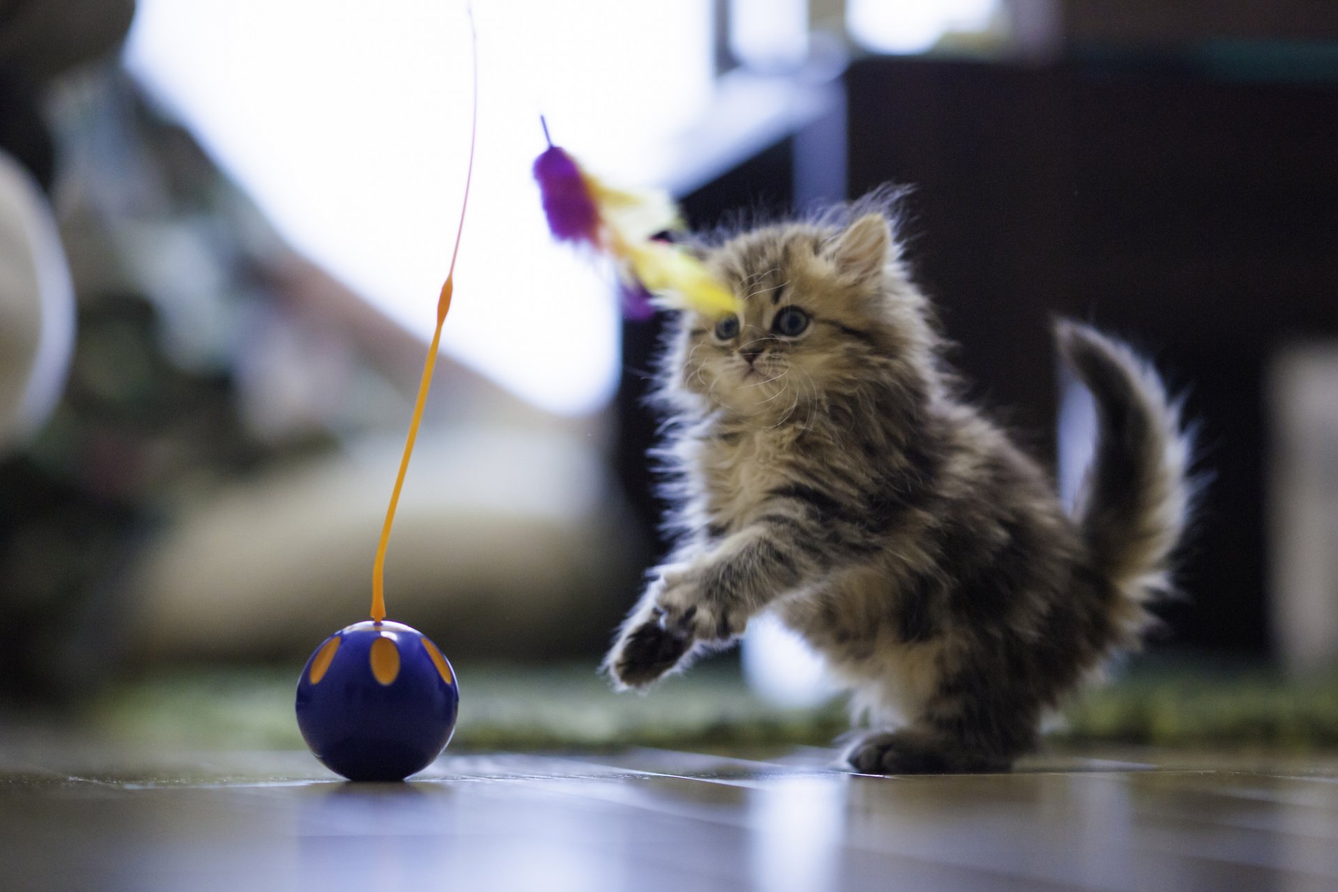 Chaton jeu balle plume