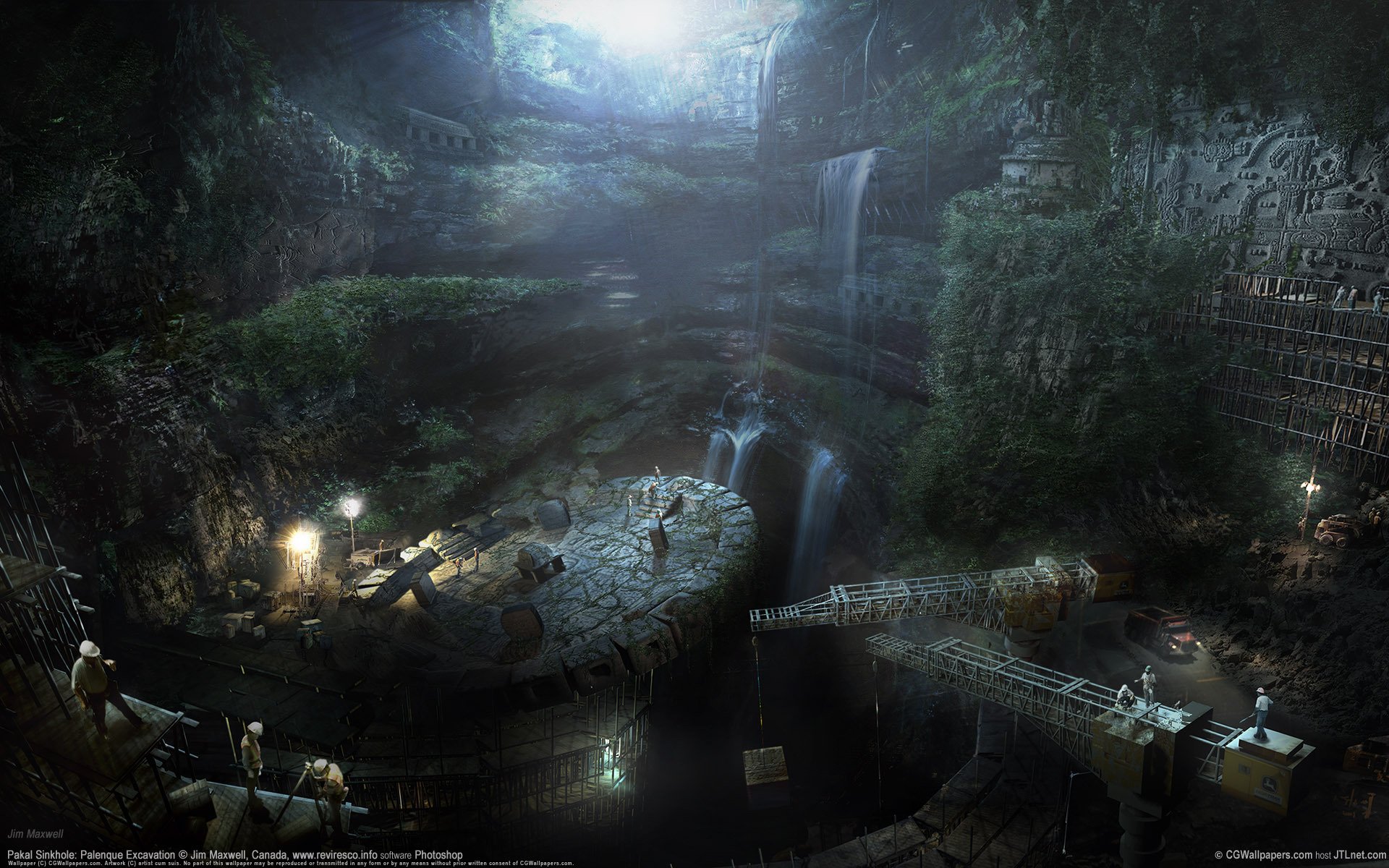 Les fouilles de Jim Maxwell dans une grotte souterraine à la lumière d'une lanterne