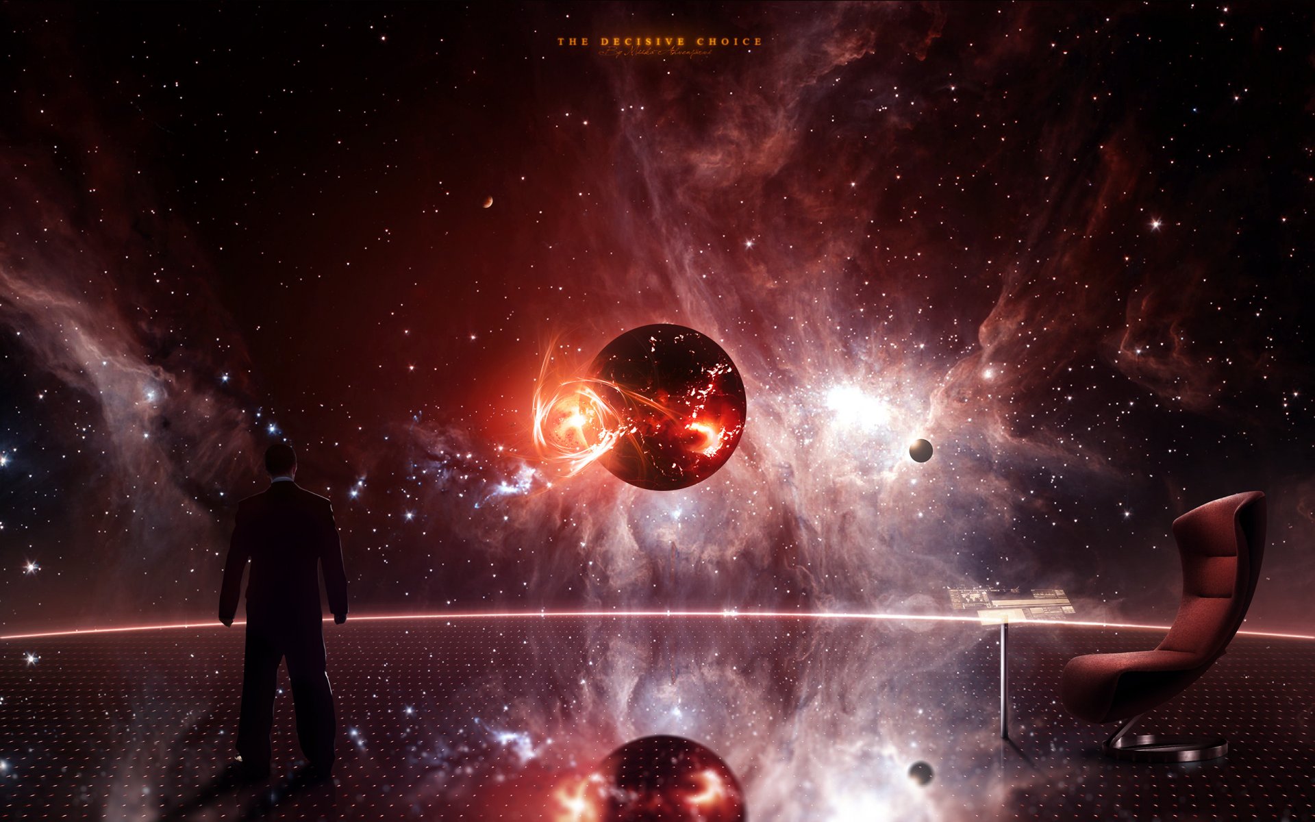 Une image fantastique du jeu Mass-efect 2 avec un homme regardant la planète