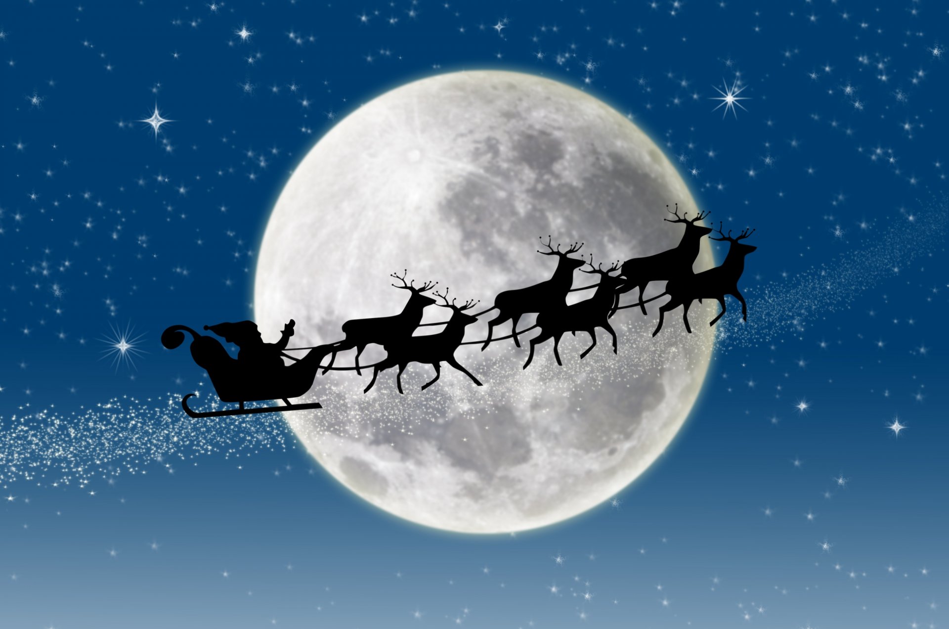 Le père Noël se lave en l'air sur un traîneau de Rennes