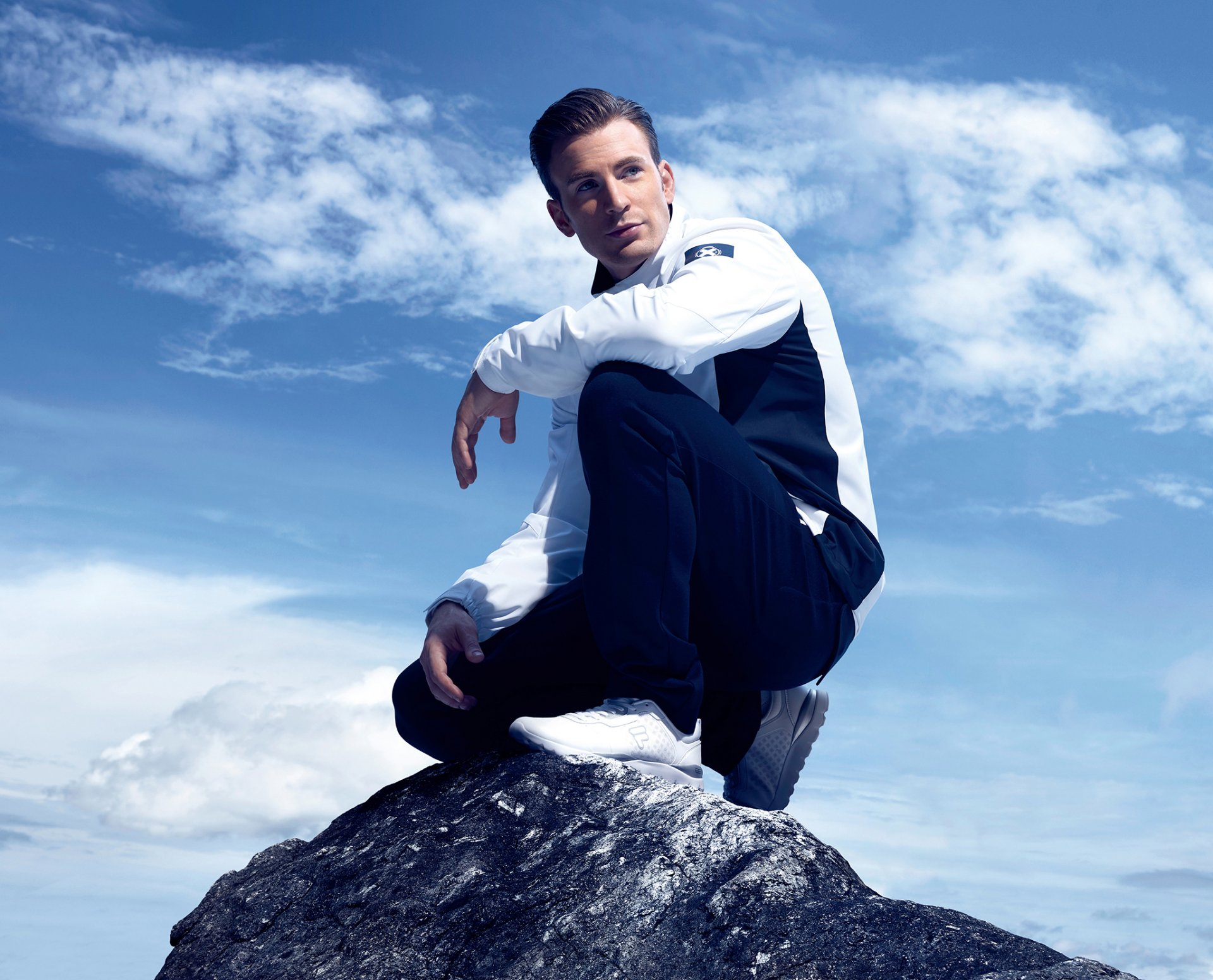 Chris Evans en survêtement et baskets