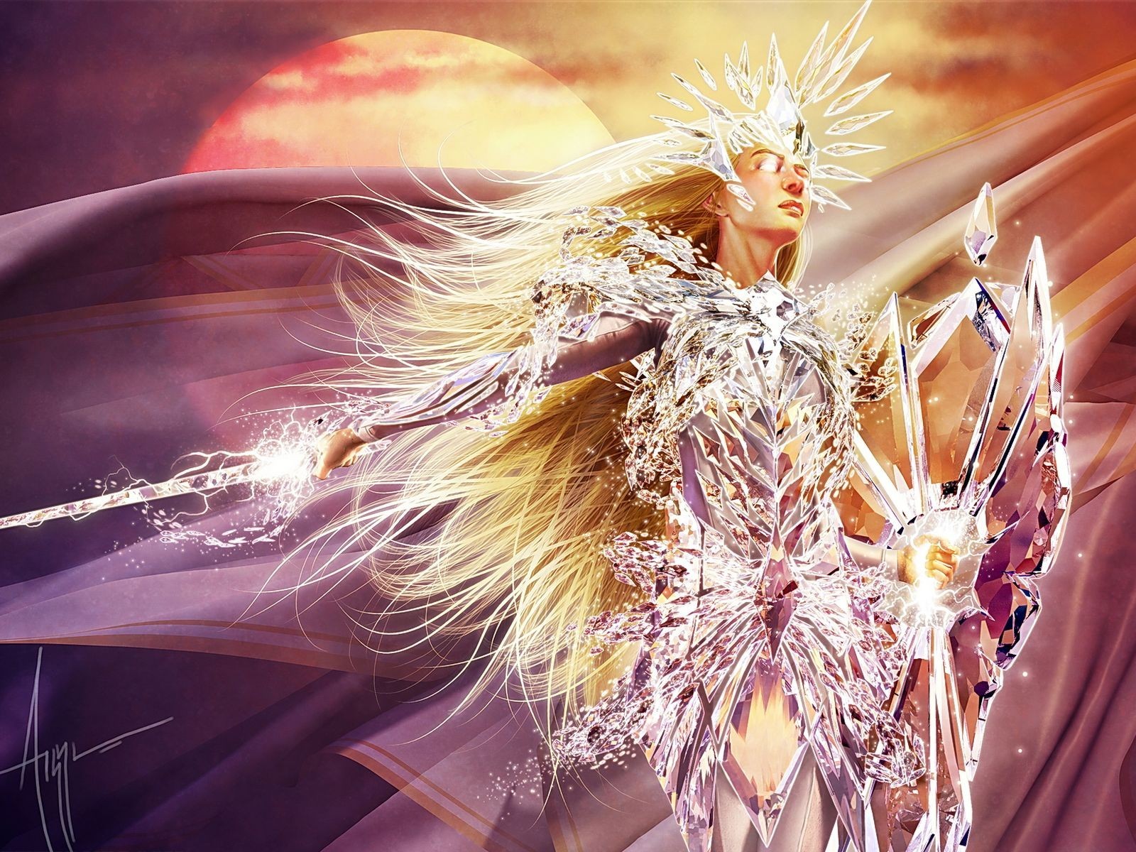 Personnage de conte de fées fille guerrier dans des vêtements de glace