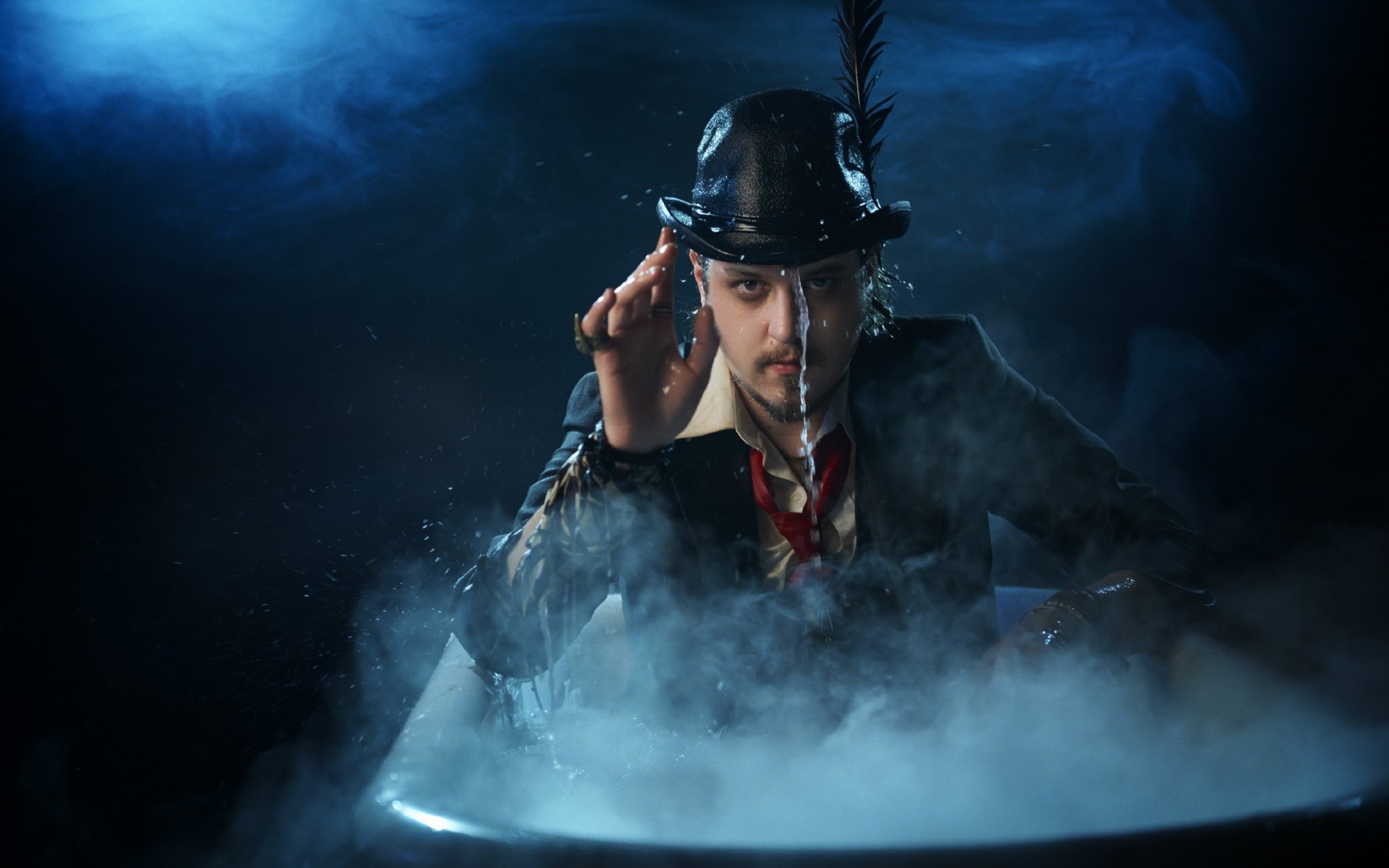 Michael emott avec le groupe sur le fond d'un vieux bâtiment
