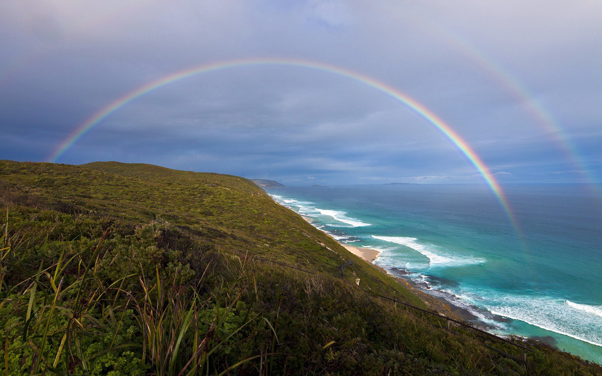 Arc-en-ciel sur l'asphalte. Photo lumineuse
