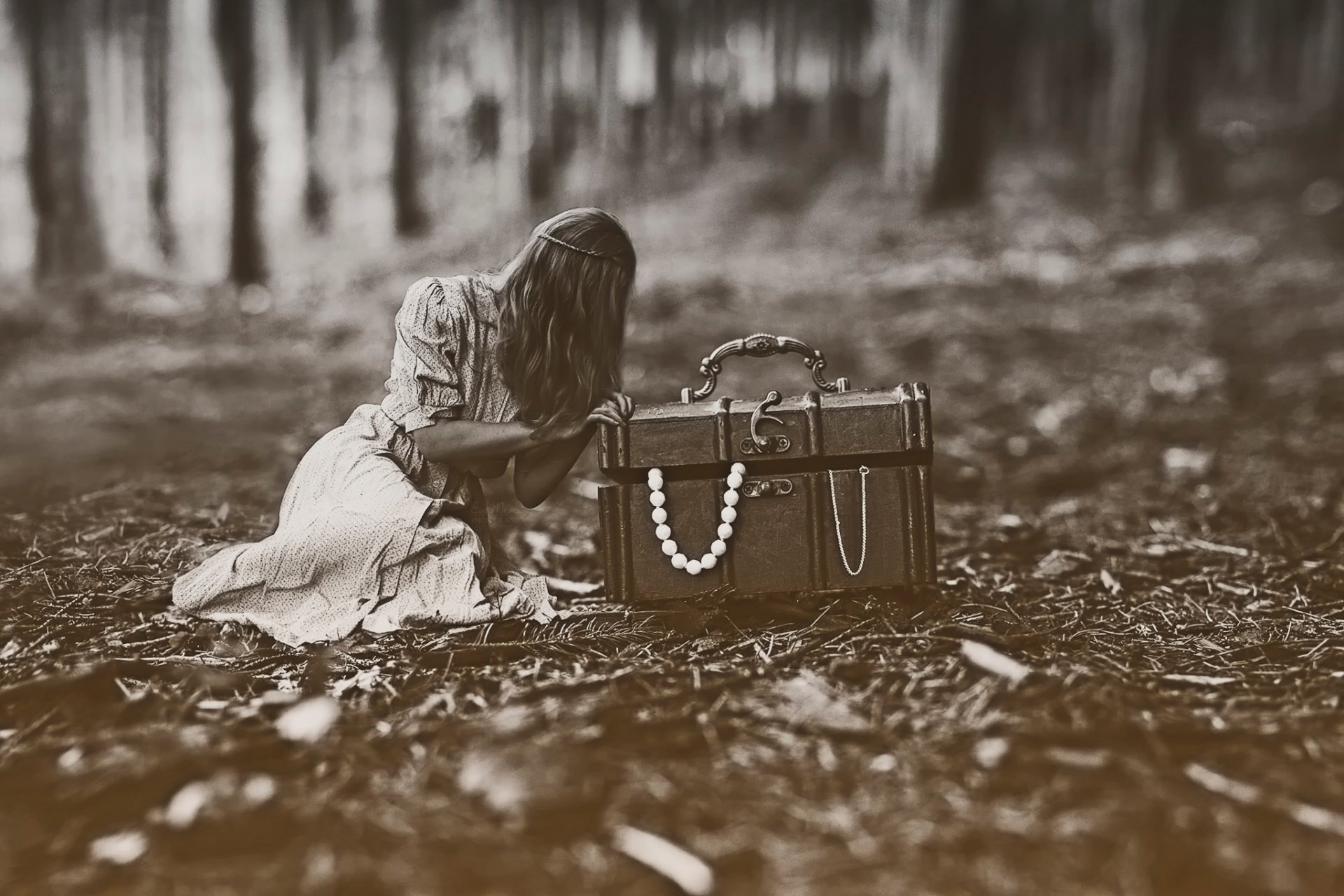 La jeune fille à la robe brune a mis le pied dans la cheville sur la chaise en bois à l'intérieur floue sur les murs fond avec de grandes fenêtres