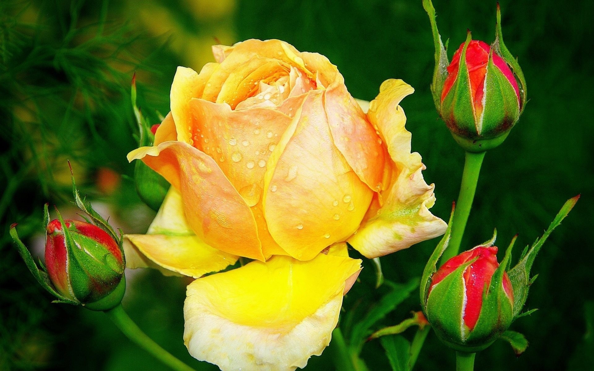 Prise de vue macro d'une rose avec des gouttes d'eau