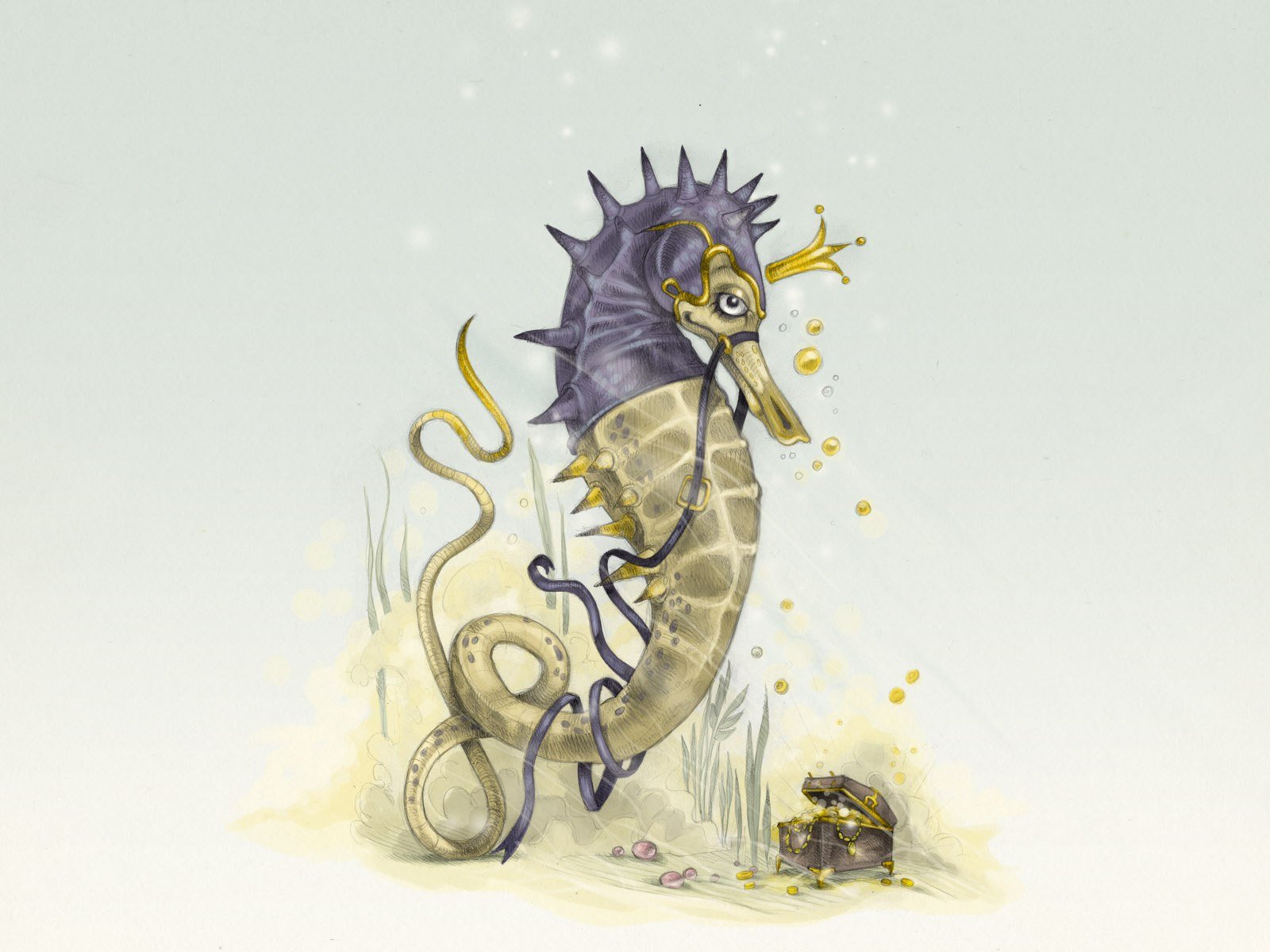 Dessin délicat d'un dinosaure avec un trèfle et une goutte d'eau dans des couleurs bleu-vert
