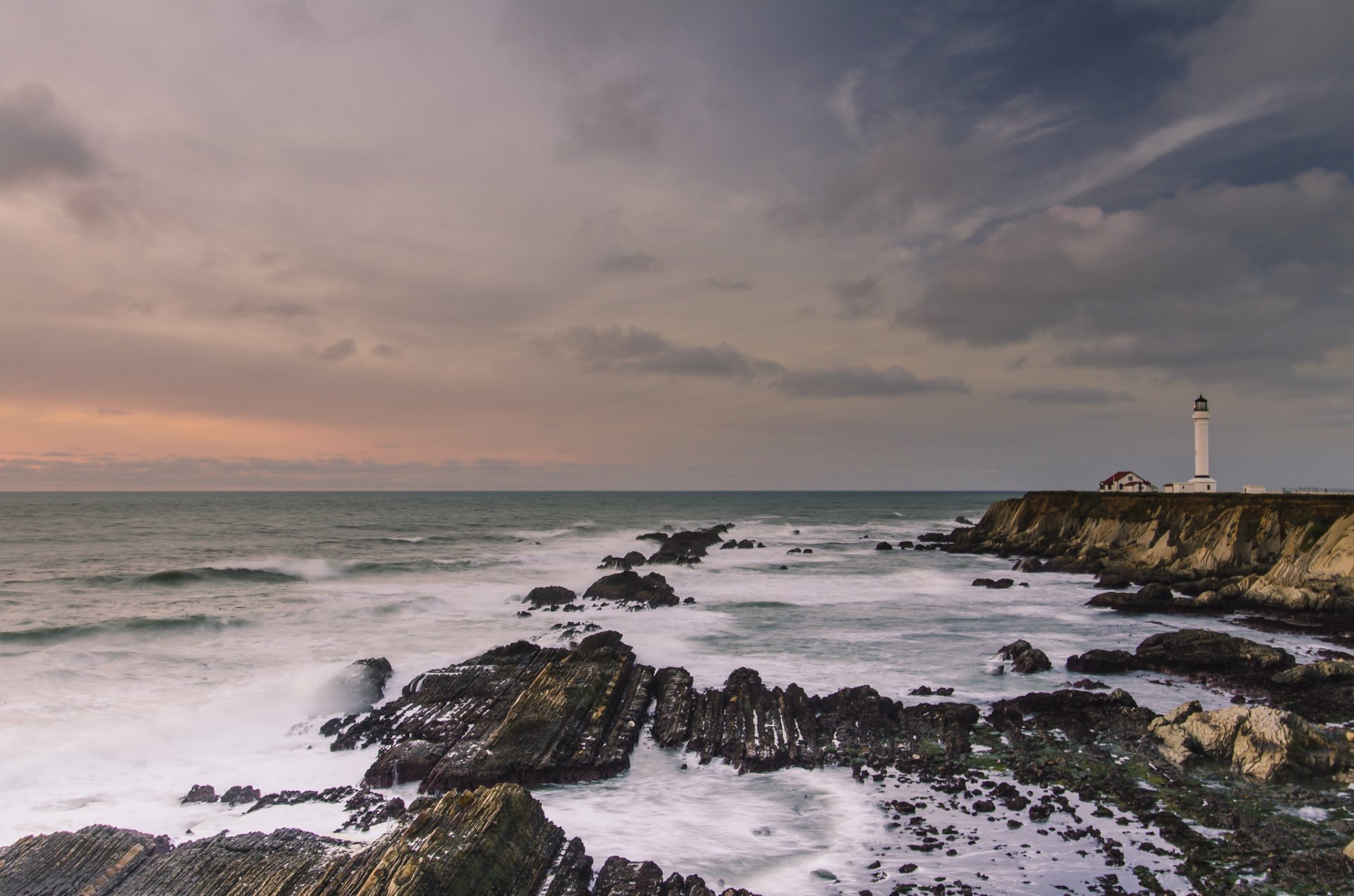 Photo d'un phare. Belle photo des rochers et de l'océan. Phare lointain sur le rivage