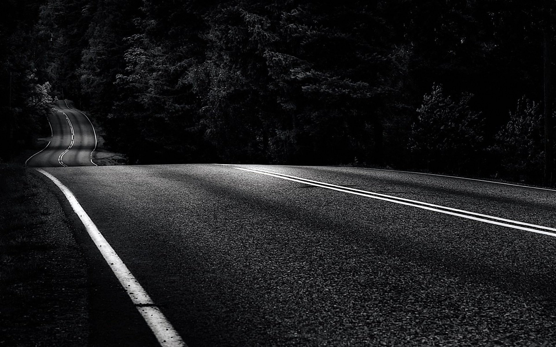 Marquage routier la nuit. Asphalte dans l'obscurité