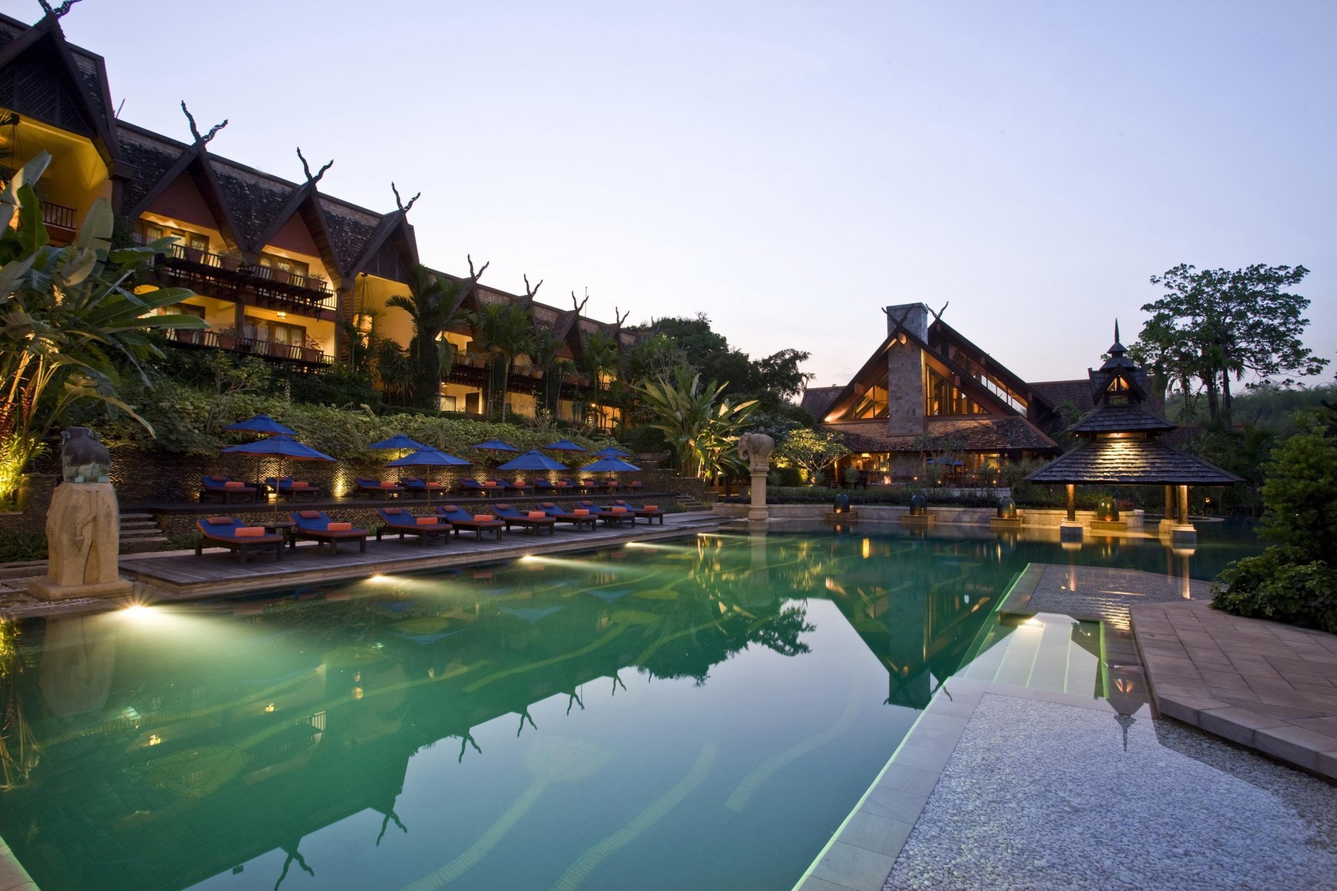 Zone de la piscine sur le territoire adjacent de l'hôtel