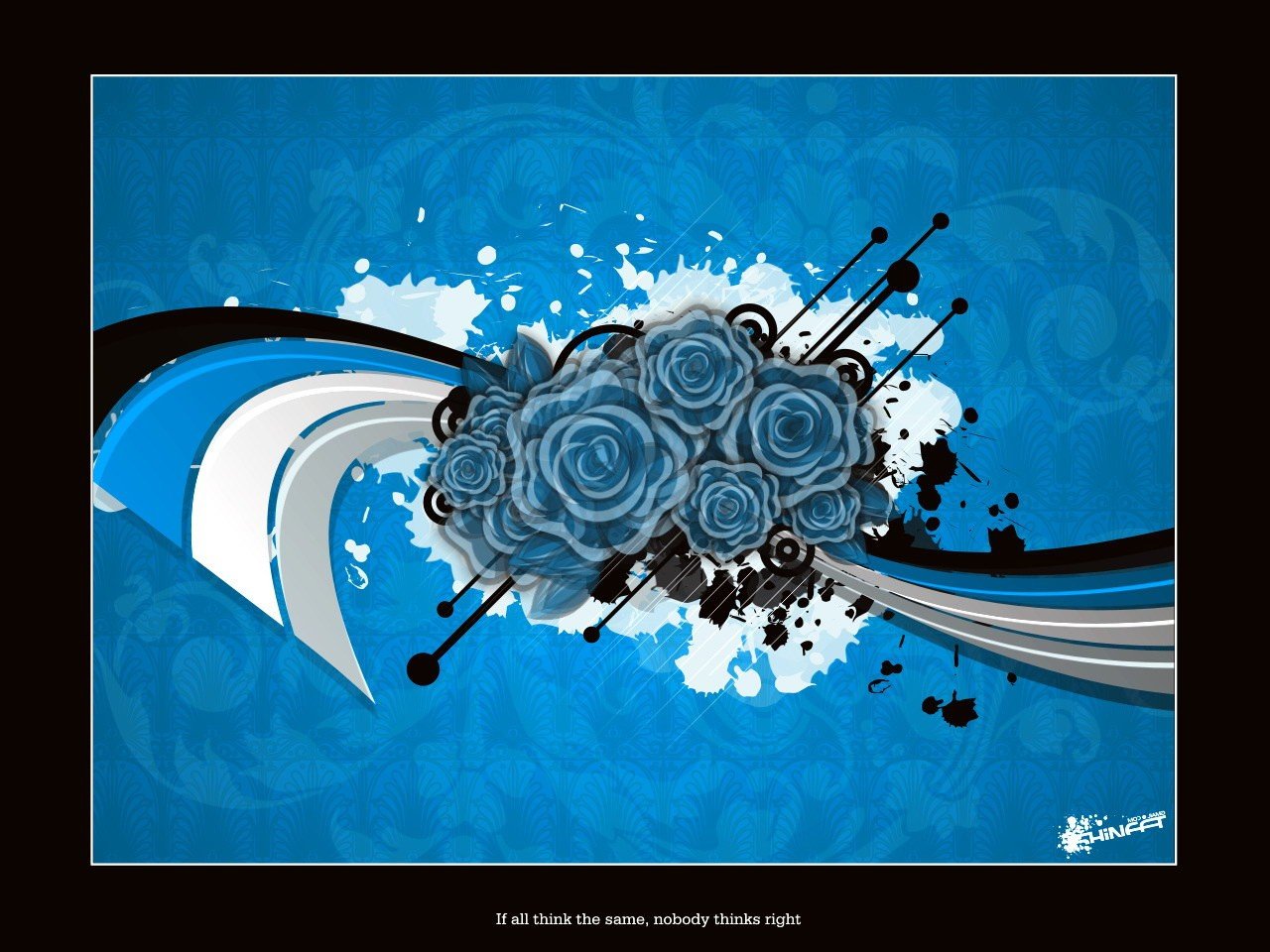 Flux de rayures créatives avec des roses bleues avec des aiguilles à tricoter et des taches