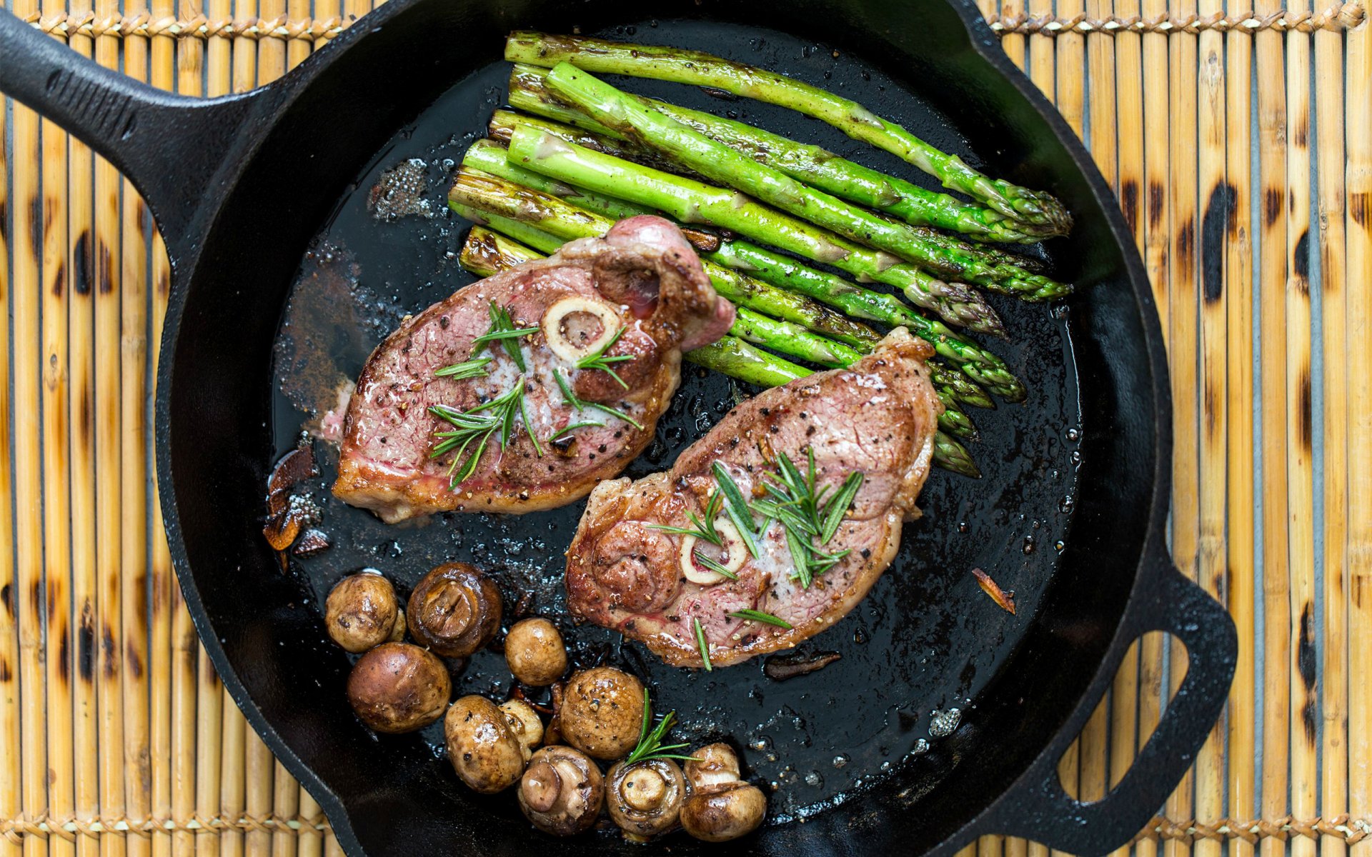 Shish kebab sur les asperges avec pomilor, concombre et saucisses