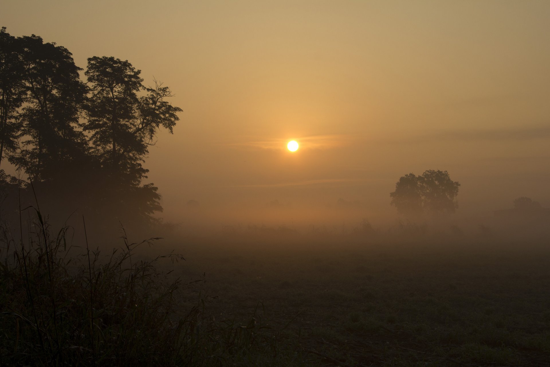 Cerf à l'aube se prélasser dans les rayons du soleil du matin sous la pluie d'été