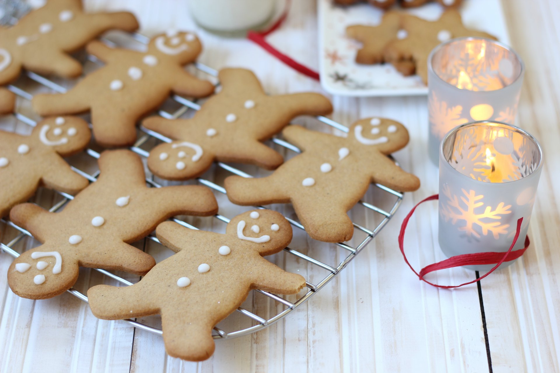 Pain d'épice festif de nouvel an et de Noël en forme d'homme avec un visage souriant et une bougie allumée dans un bougeoir
