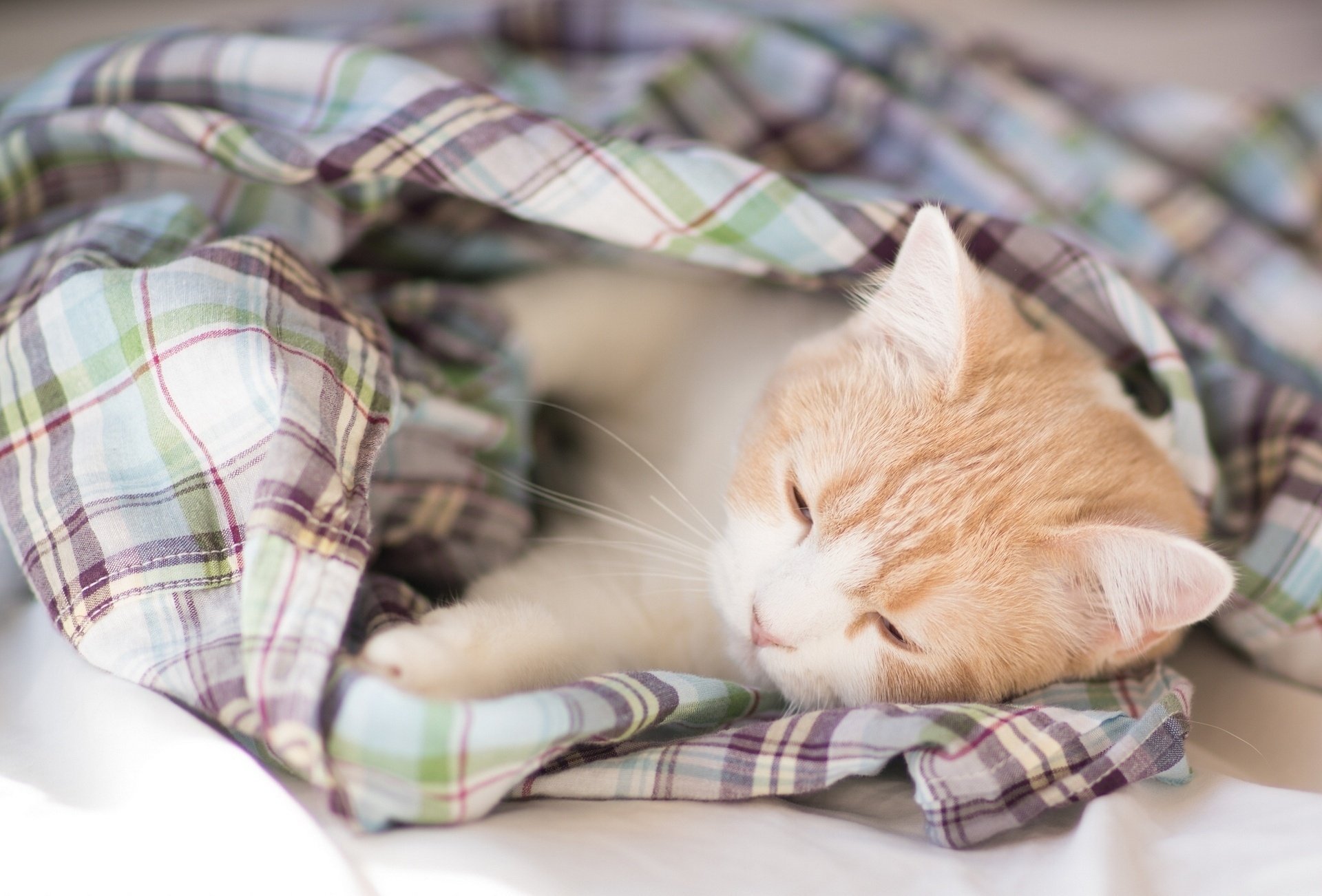 Matin d'un petit chaton sous un mouchoir