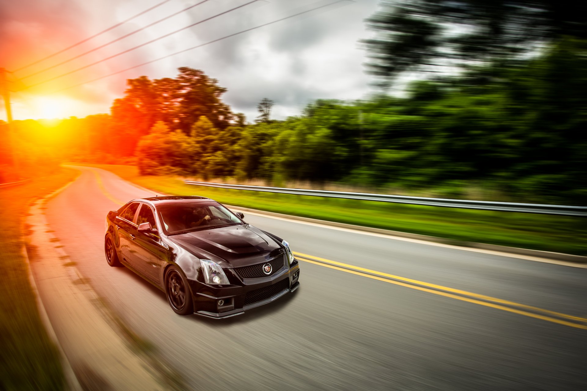 Belle voiture Cadillac grise sur fond de coucher de soleil