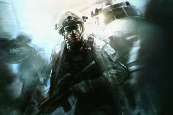 Soldat du jeu call of duty dans un gilet pare-balles et de l'équipement