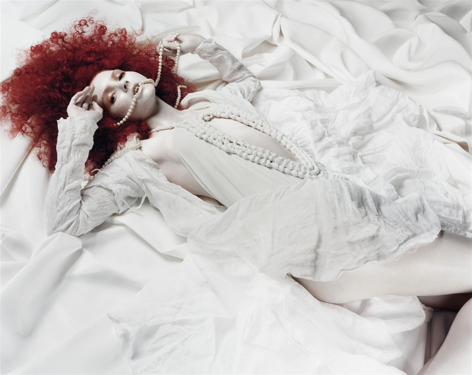 Fille rousse sur des pastels avec des perles