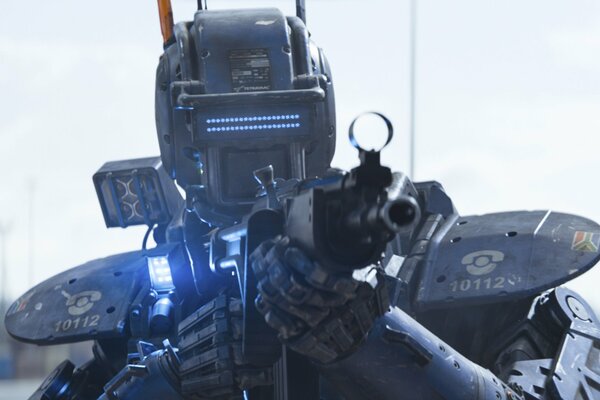 Le robot écrit un mot sur le mur, et il y a une arme à côté