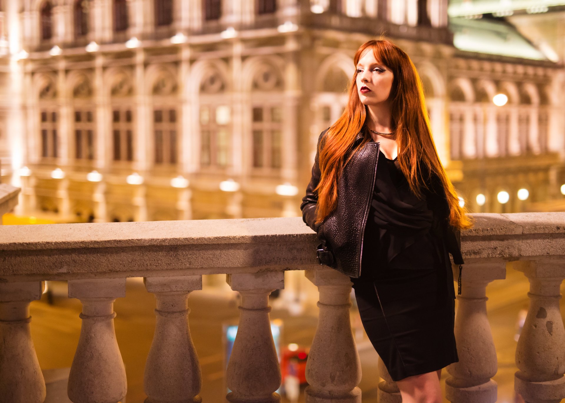 Portrait d'une jeune fille aux cheveux roux et les yeux bleus