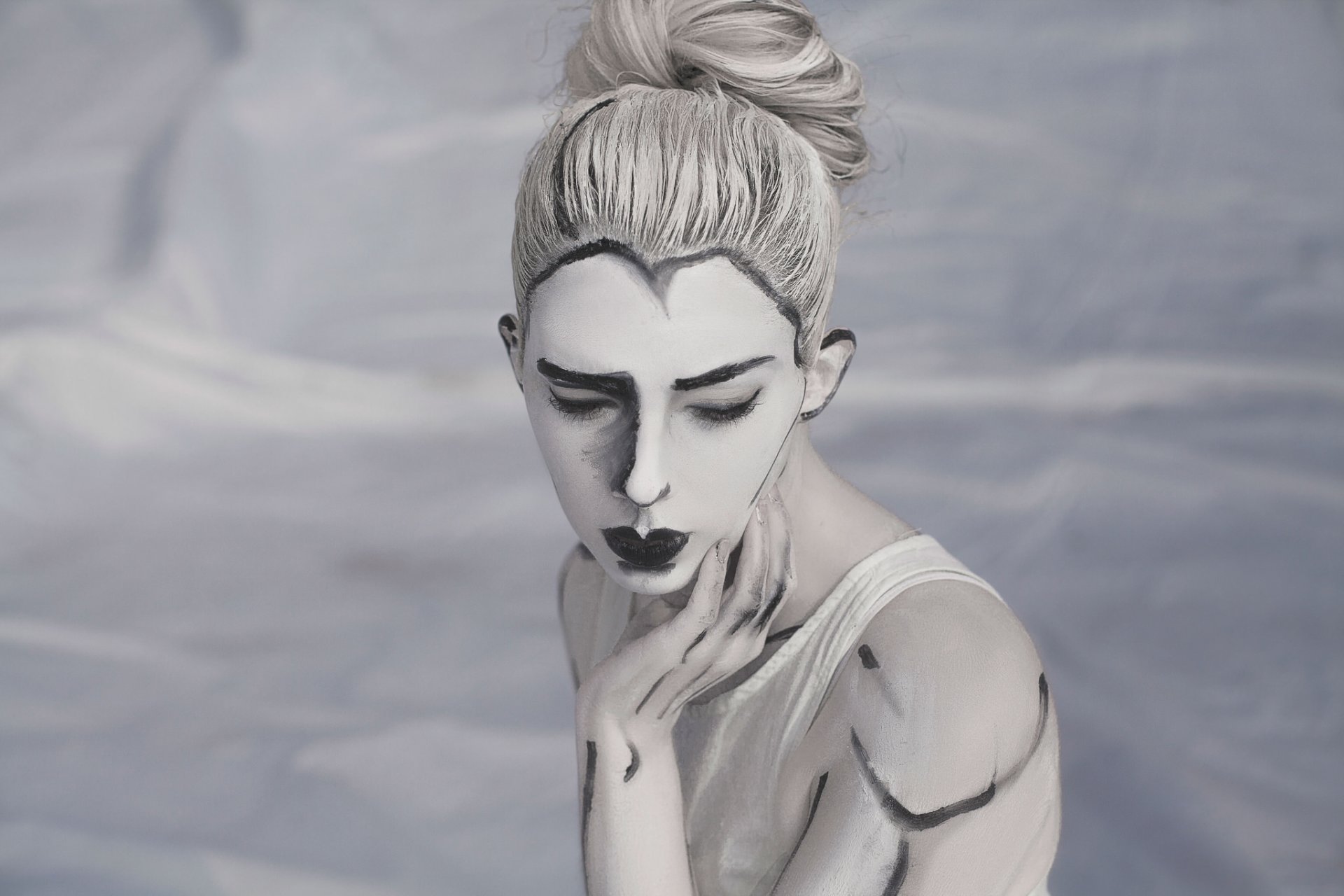 Jeune fille, avec la main levée, regarde par la fenêtre