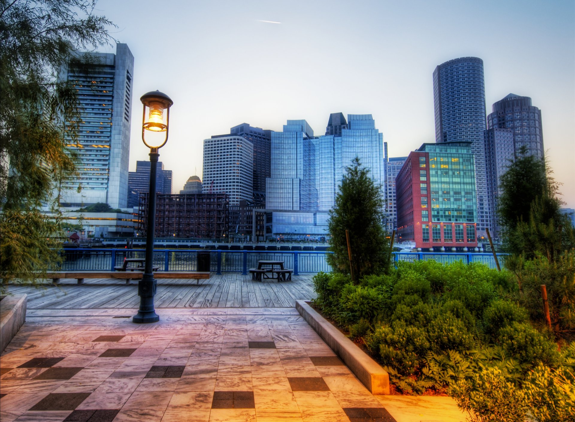 Sur le front de mer de Boston. Vue sur les bâtiments