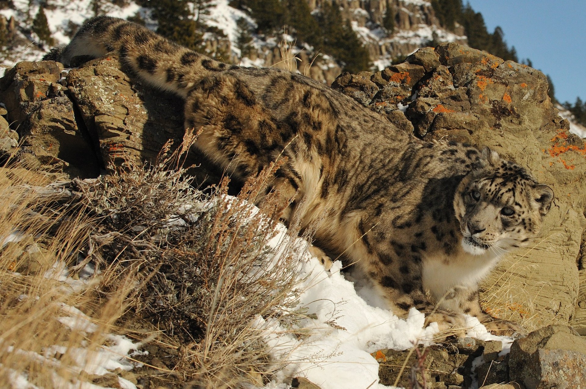 Lynx des steppes avec la bouche ouverte et les crocs se trouve sur l'herbe
