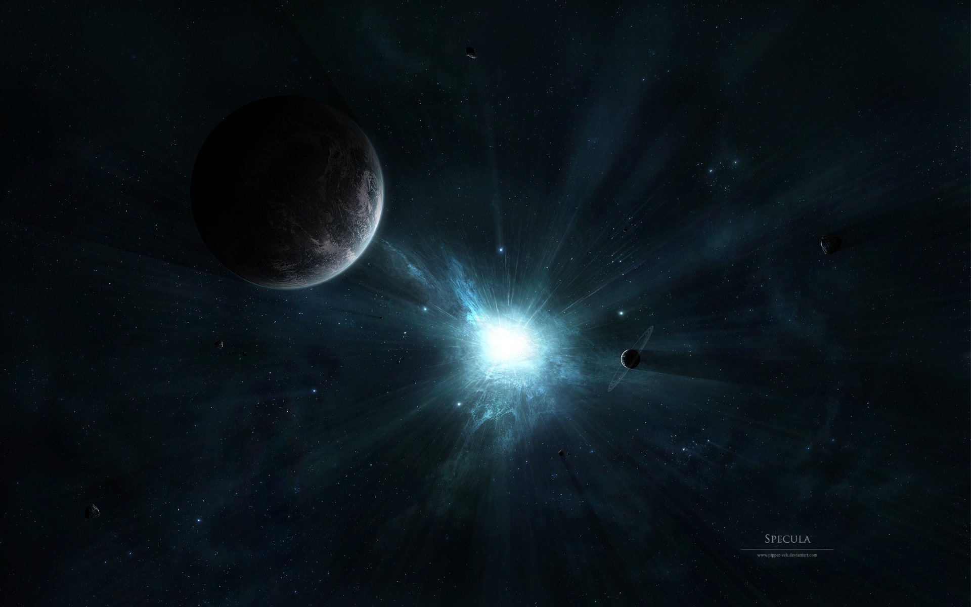 Cosmos. Planètes éclairées par des aurores turquoises