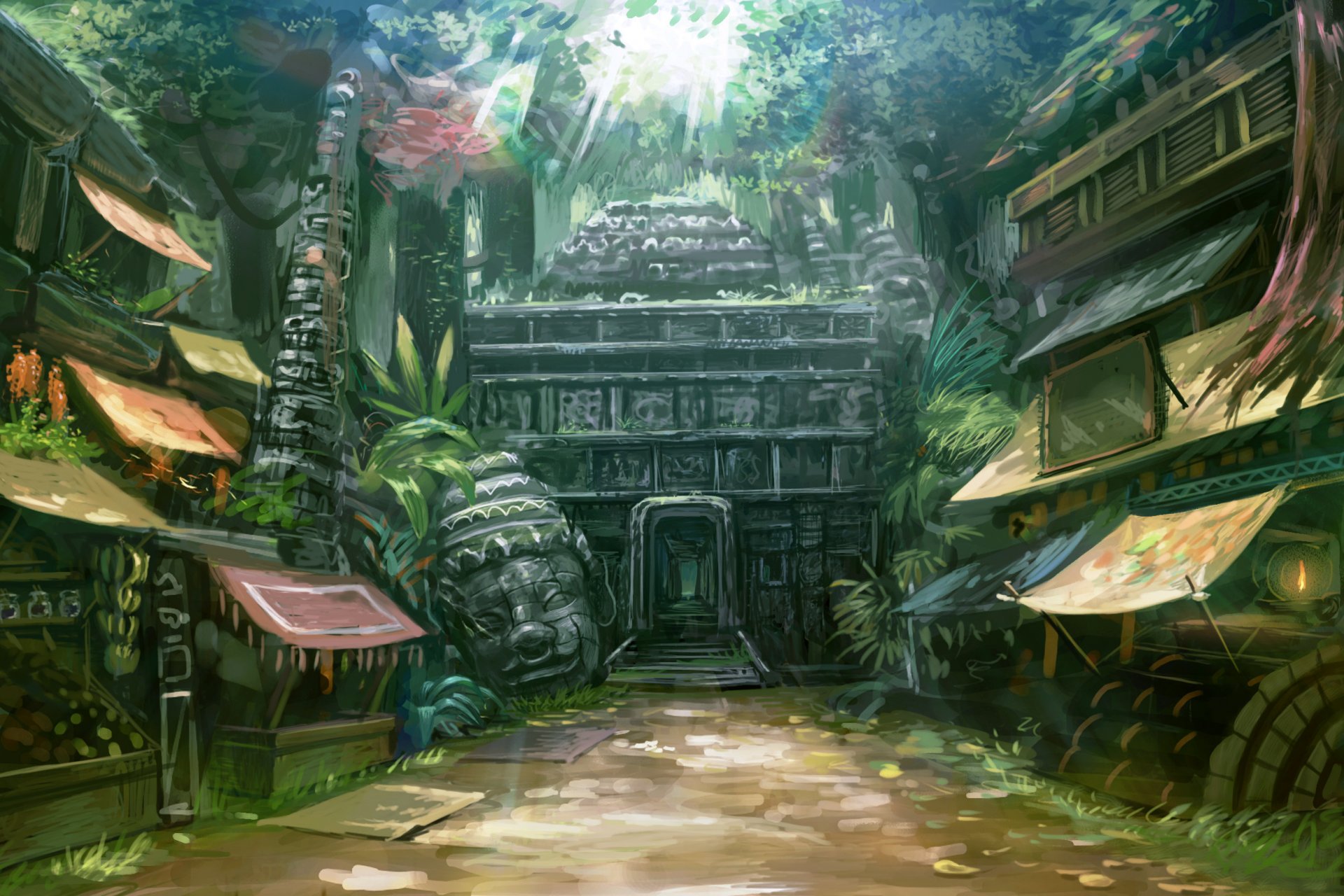 Temple Oriental avec la tête de la divinité à l'entrée