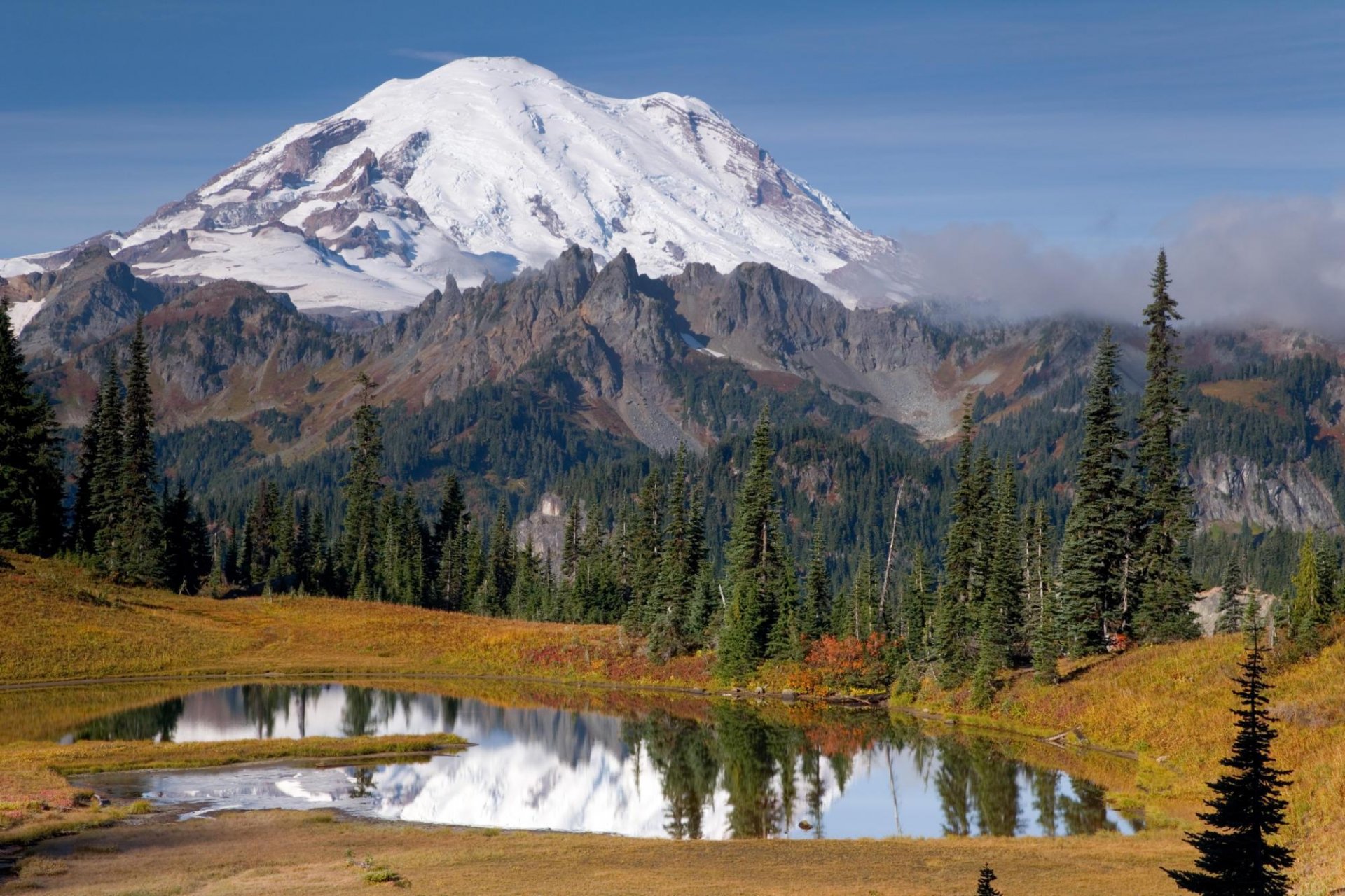 Le contraste incroyable du paysage: le soleil avec le brouillard à gauche, la neige au pied des montagnes à droite