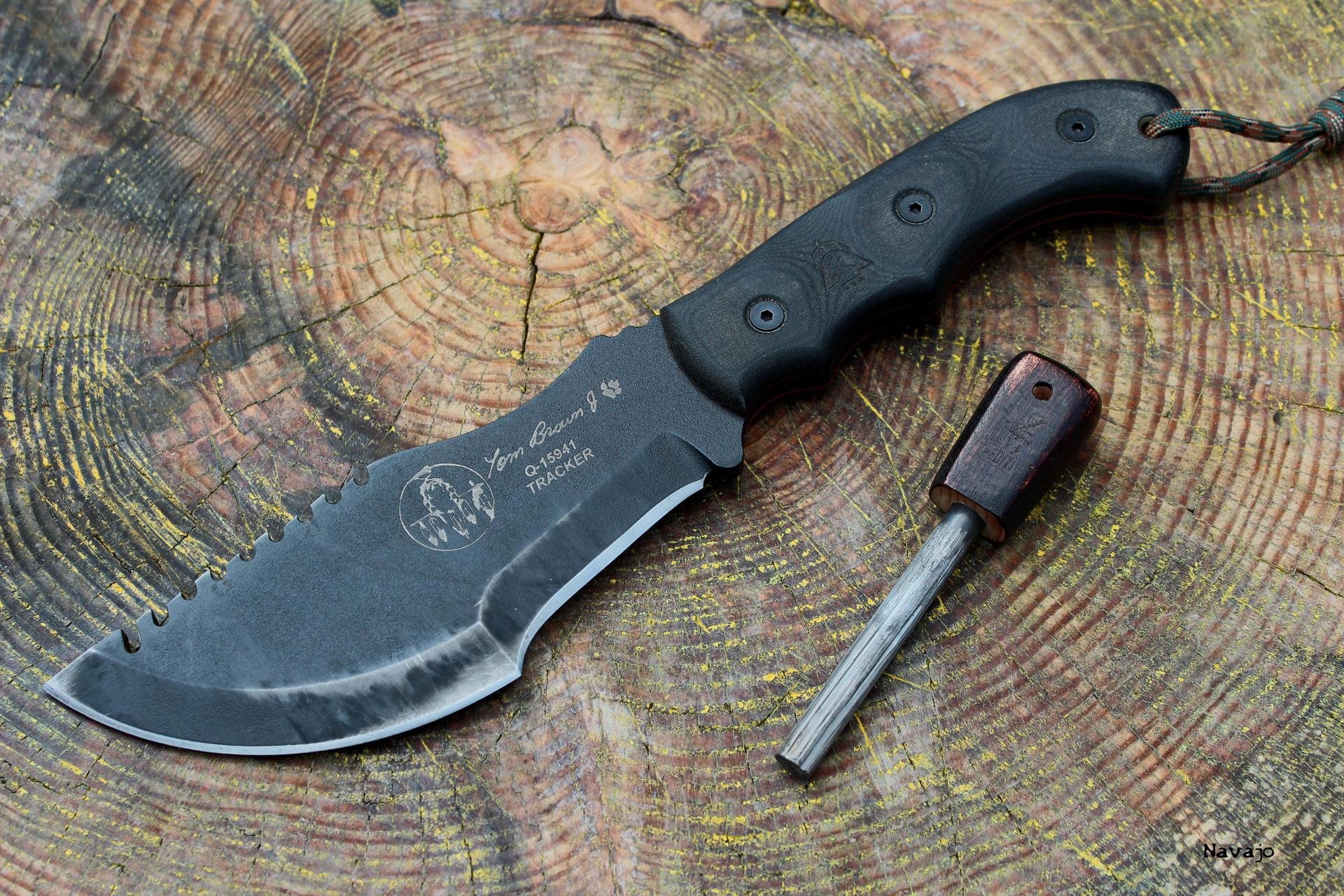 Sur la coupe de la souche se trouve un couteau de chasse avec des entailles