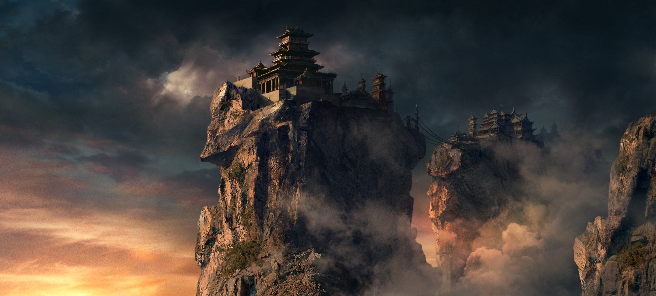 L'art, le feng liu , les temples et sur les rochers à grimper, un pont