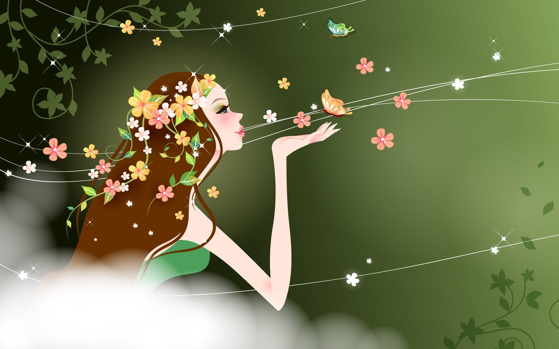 Belle et maison fille avec des fleurs dans les cheveux