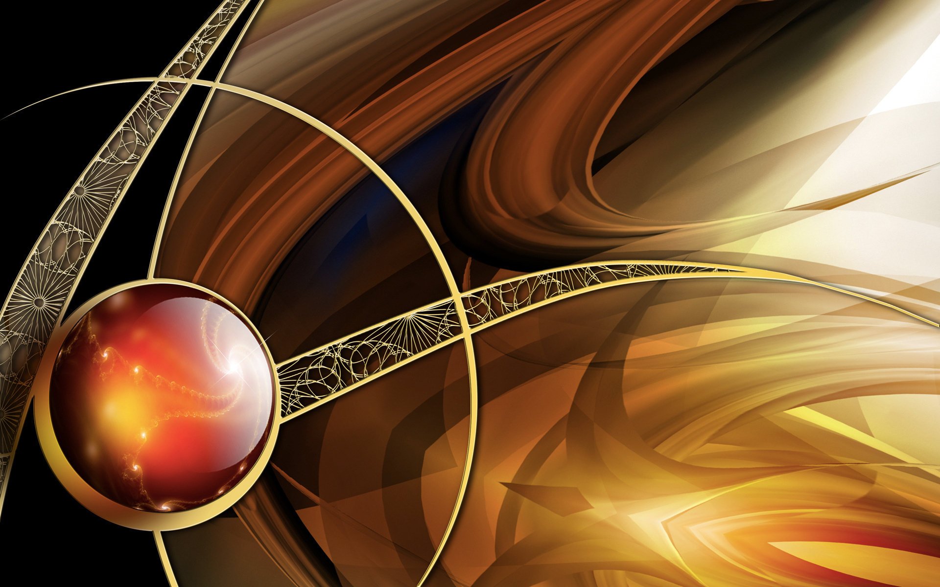Sur un fond chaud, une boule de couleur ambre dans un cadre en métal