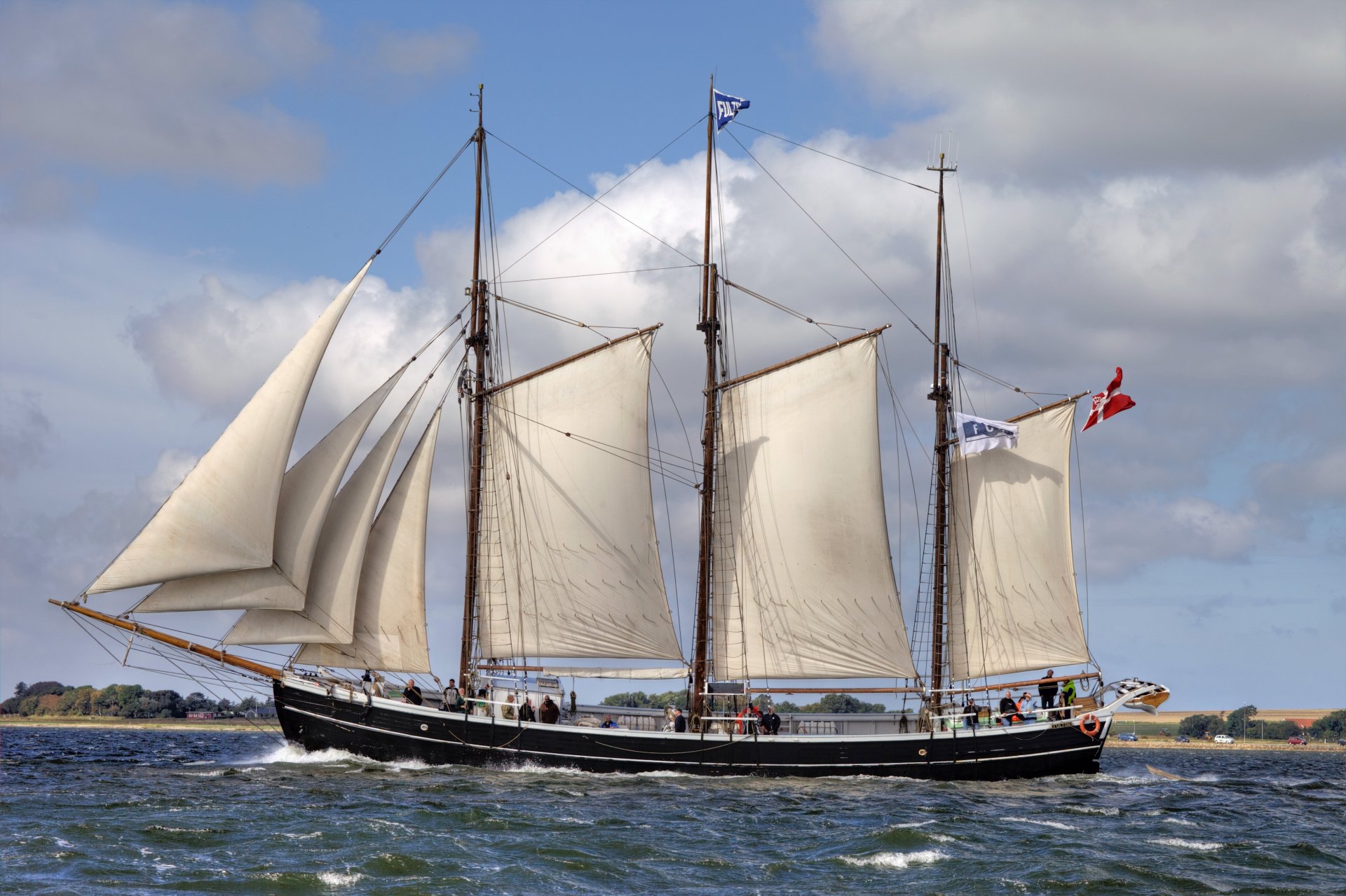 Navire avec des voiles levées au milieu des vagues