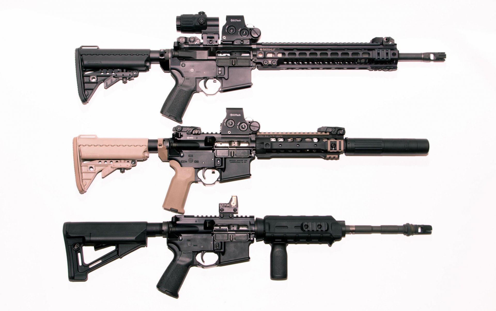Fusil d'assaut AR-15 avec clips, couteau et pistolet