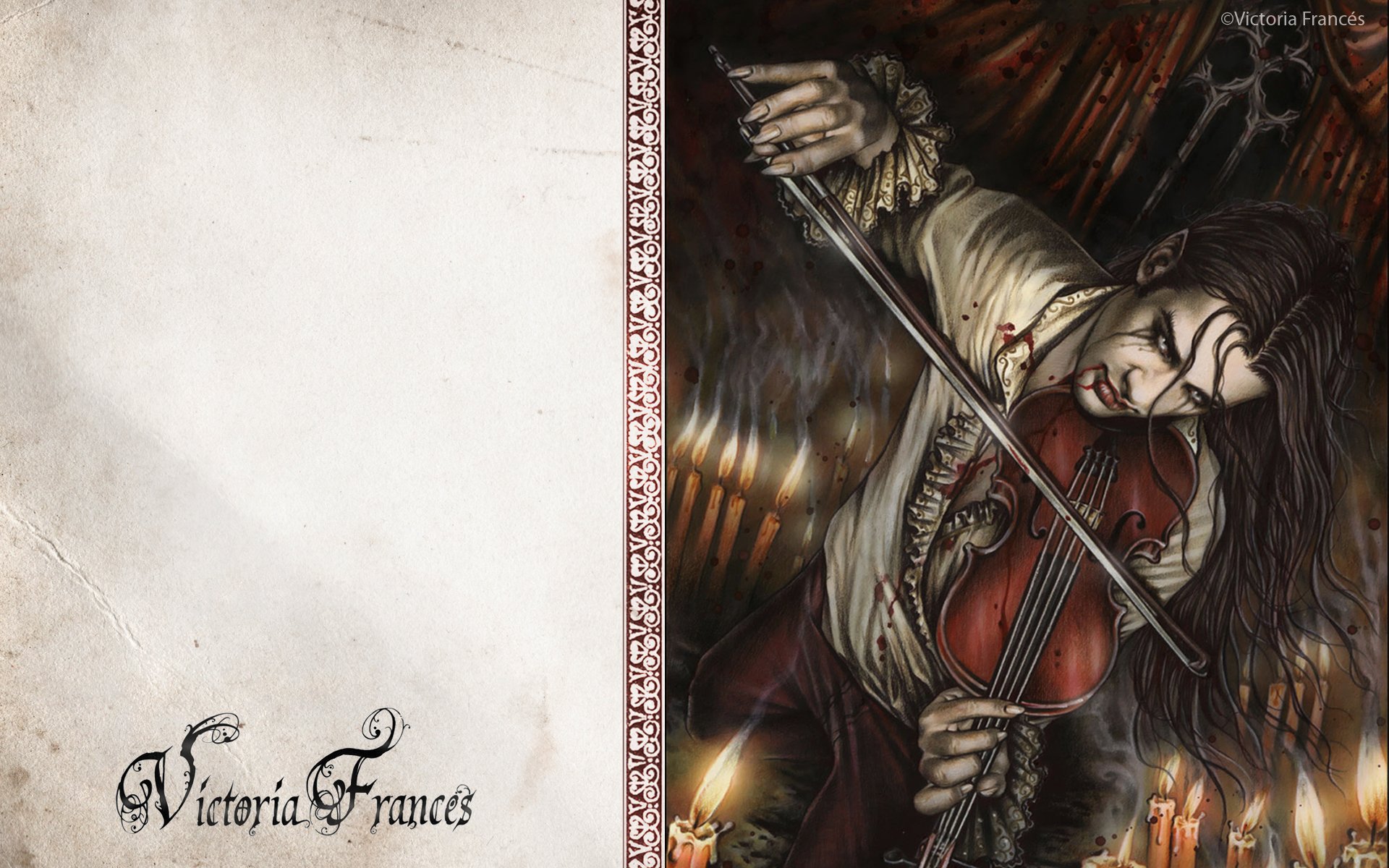 Homme vampire joue du violon. Dessin gothique de Victoria Francaise