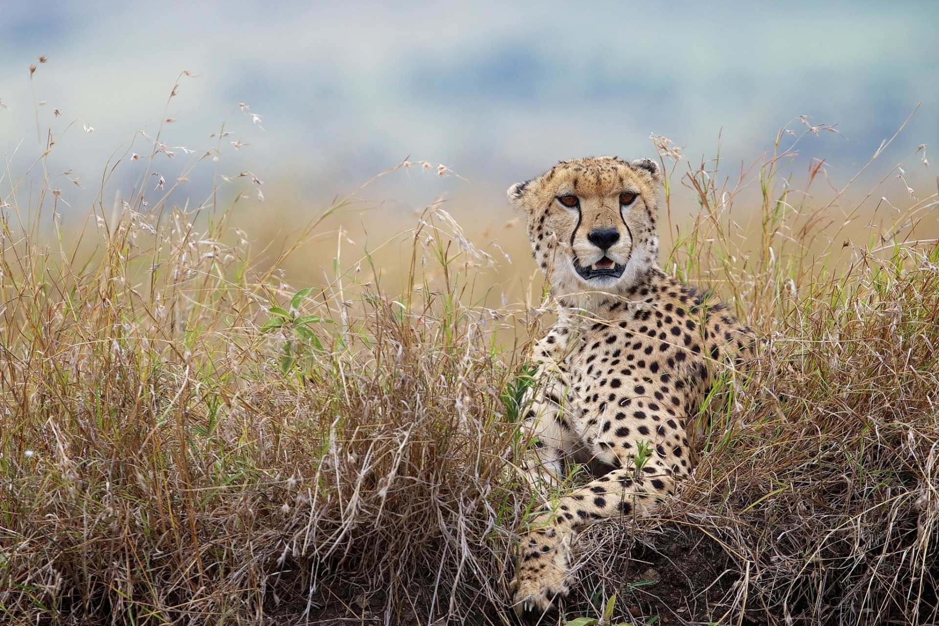 GUÉPARD REGARDE LA PROIE COUCHÉE