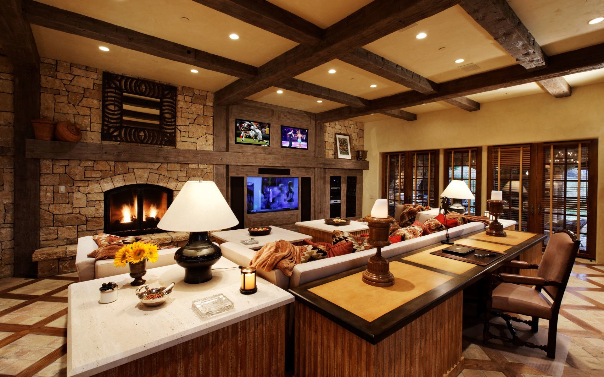 Intérieur confortable de la chambre avec cheminée
