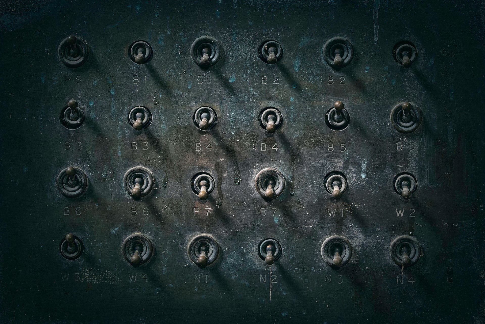 Panneau de commande du mécanisme hydraulique avec interrupteurs à bascule, manomètres et boutons de démarrage