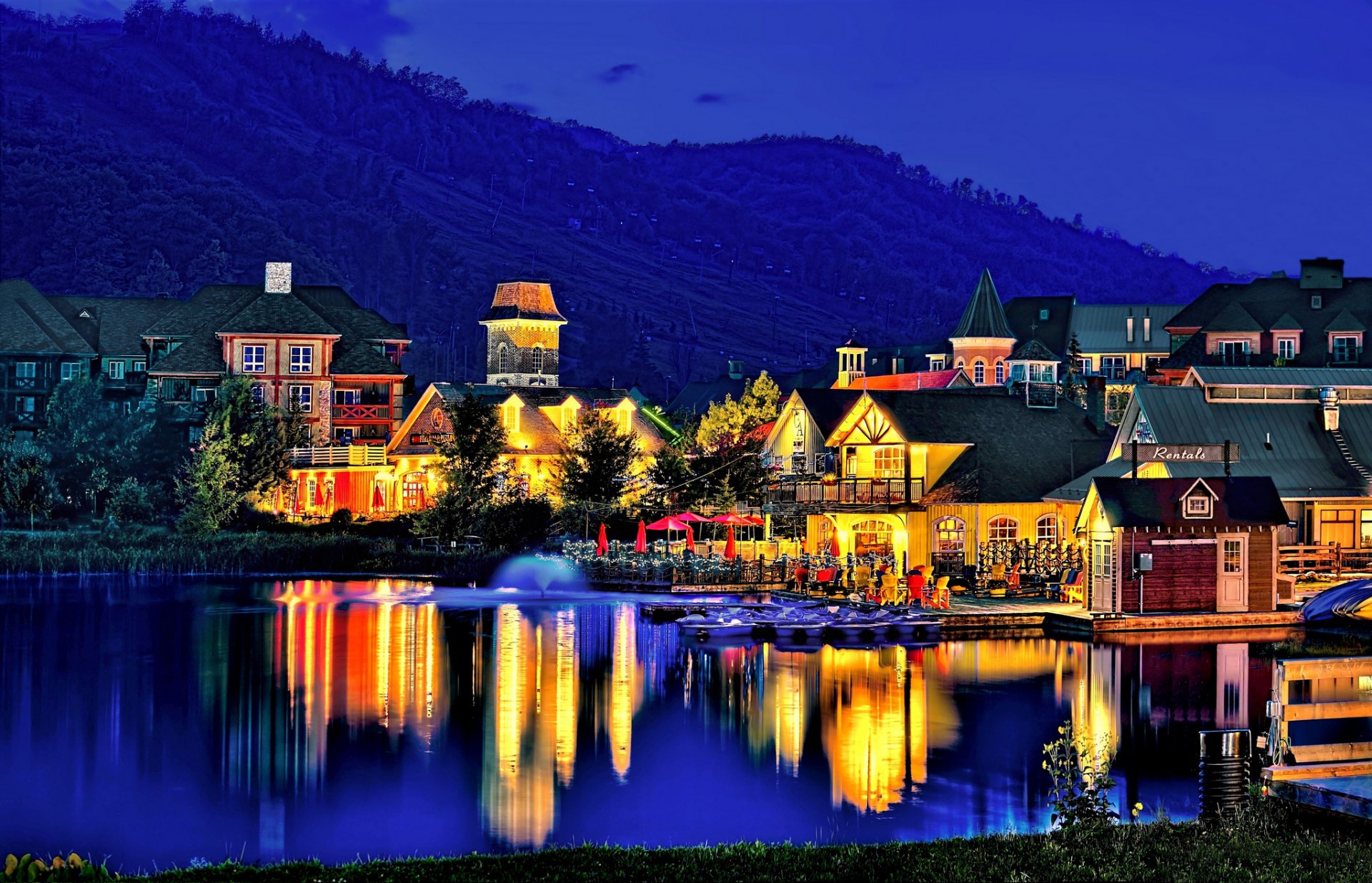 Lac d'automne avec forêt et montagnes en arrière-plan