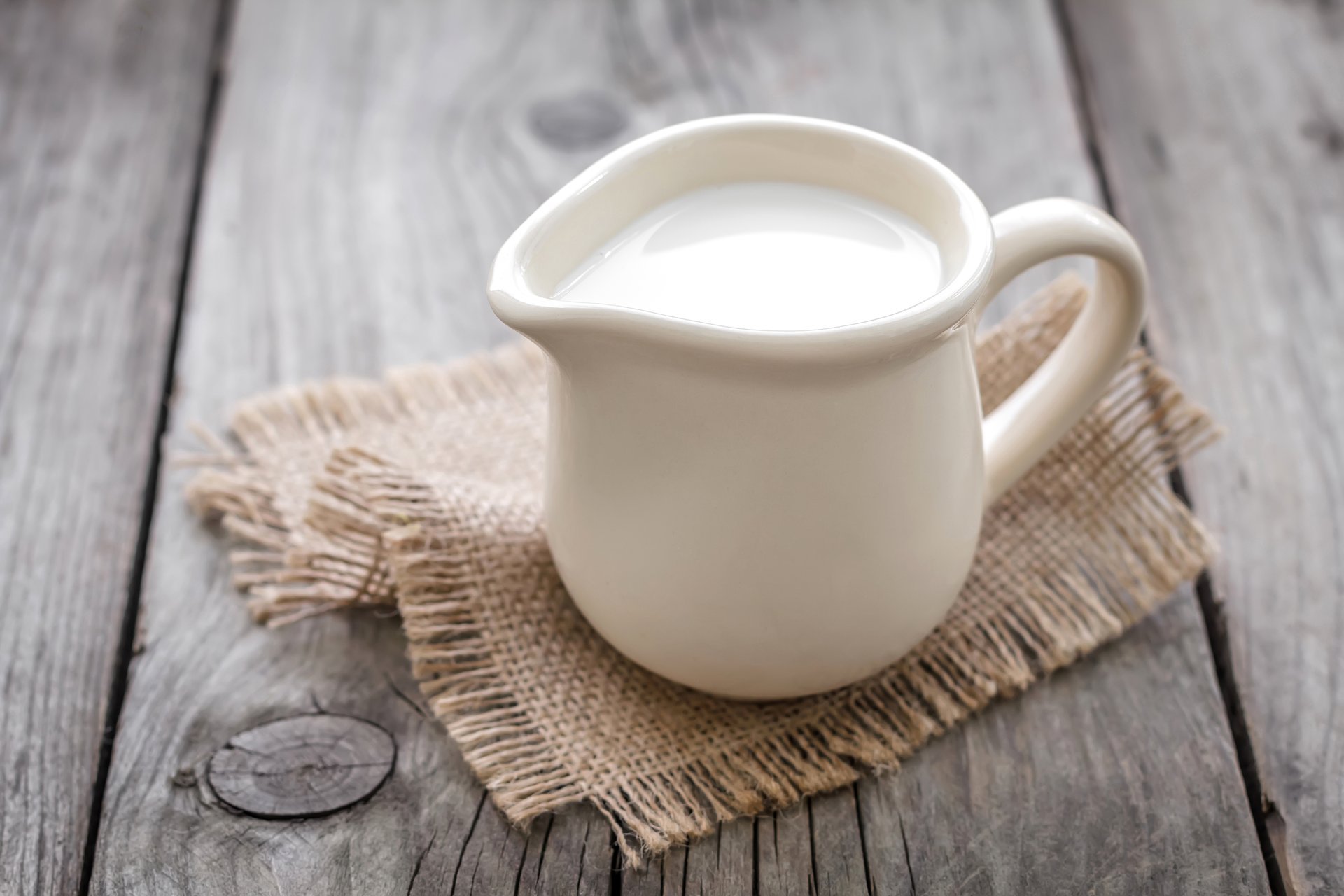 Laitier blanc avec du lait sur une serviette