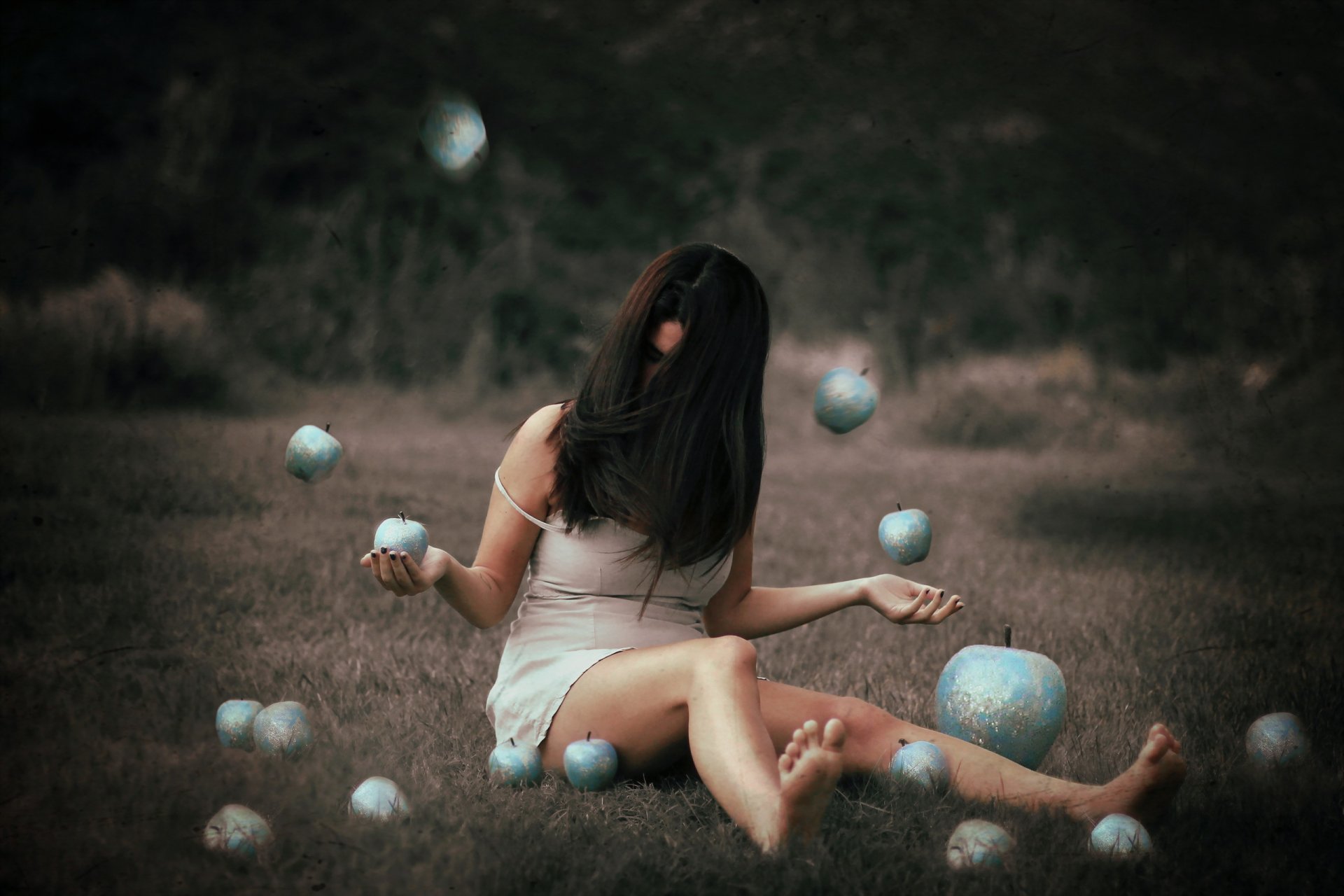 Insolite митуация. La jeune fille avec le bleu des pommes