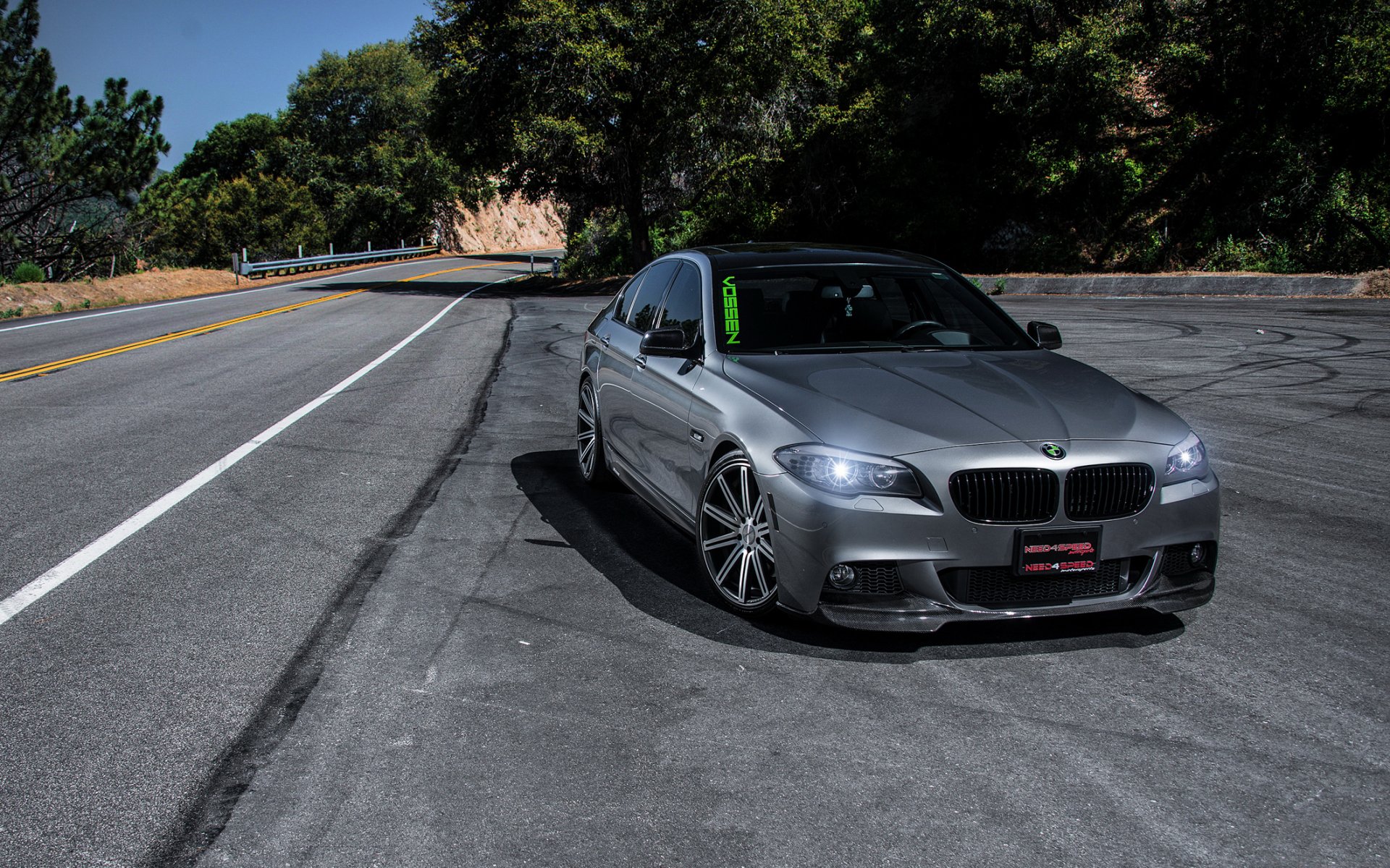 BMW blanche avec phares allumés sous le poteau de contreplaqué
