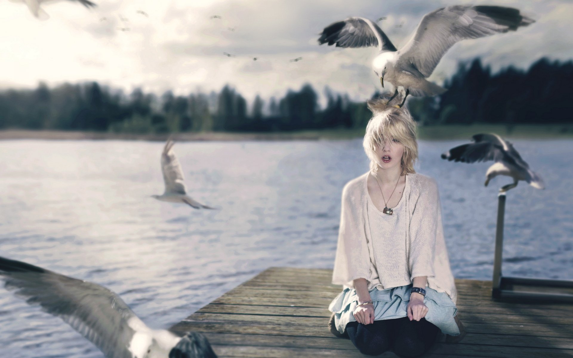 La jeune fille sur le seuil de la maison abandonnée, pommes de terre et les oiseaux noirs